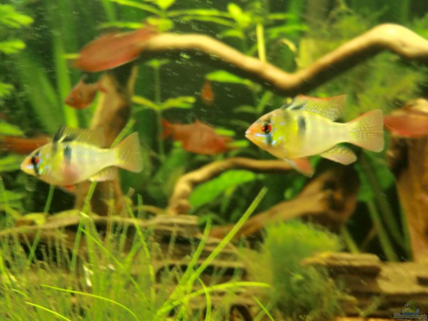 Aktueller Besatz: 11 Blutsalmler 10 Längsbandziersalmler 1 L144 1 Lila Apfelschnecke 6 Metallpanzerwelse 2 Schmetterlingsbuntbarsche 5 Amanogarnelen 1 Brauner Antennenwels