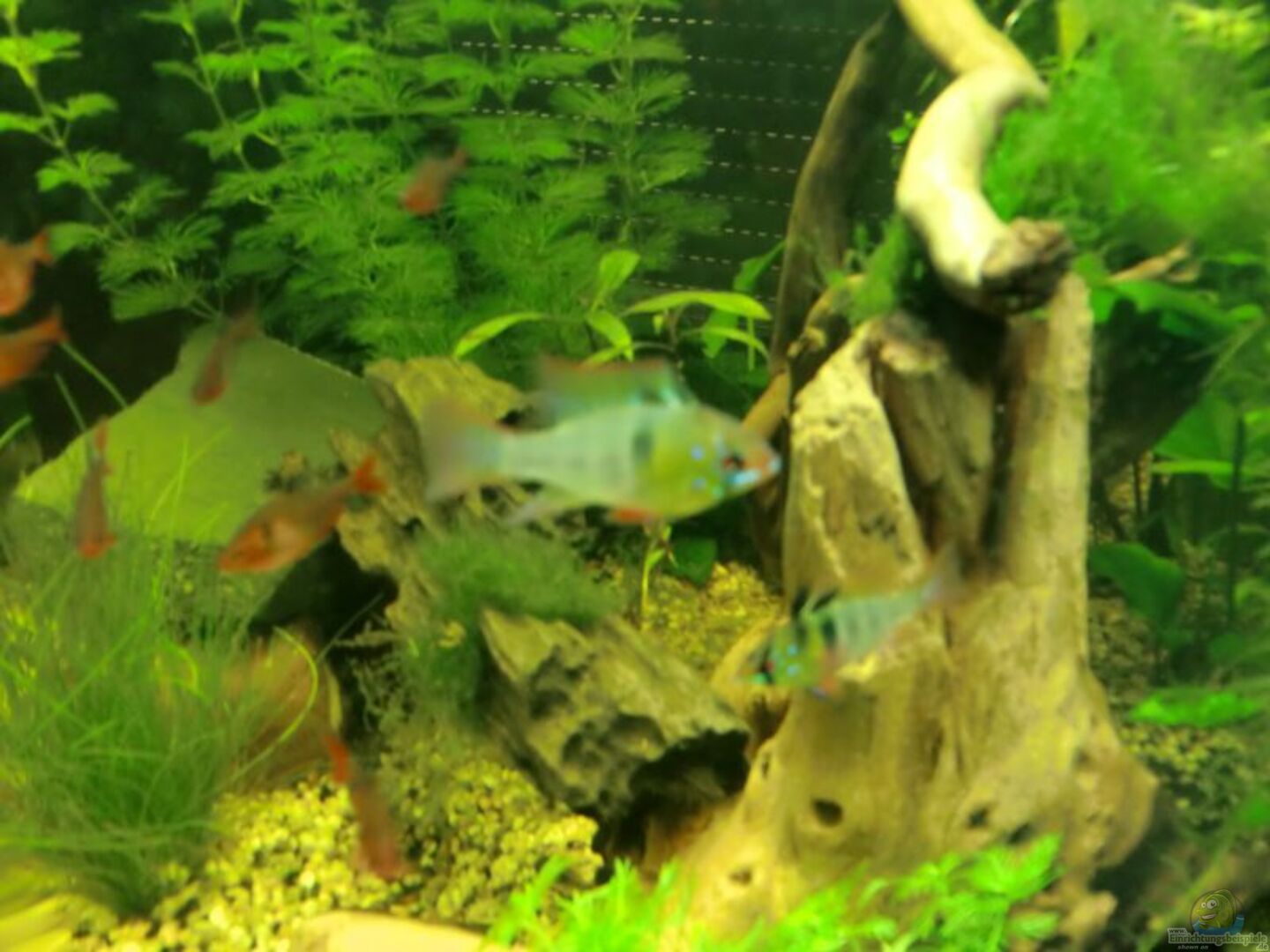 Aktueller Besatz: 11 Blutsalmler 10 Längsbandziersalmler 1 L144 1 Lila Apfelschnecke 6 Metallpanzerwelse 2 Schmetterlingsbuntbarsche 5 Amanogarnelen 1 Brauner Antennenwels