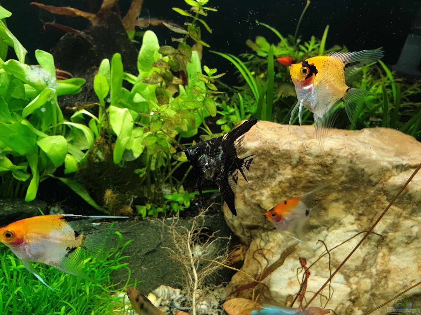 1/1 Apistogramma cacatuoides 1/1 Mikrogeophagus ramirezi 1/1 Mikrogeophagus ramirezi "Electric Blue" 3 Koi-Skalar, Pterophyllum scalare 1 Schwarzer Skalar, Pterophyllum scalare 6 Corydoras aeneus "Black Venezuela" 25 Roter Neon, Paracheirodon axelrodi 5 Paradiesschnecken
