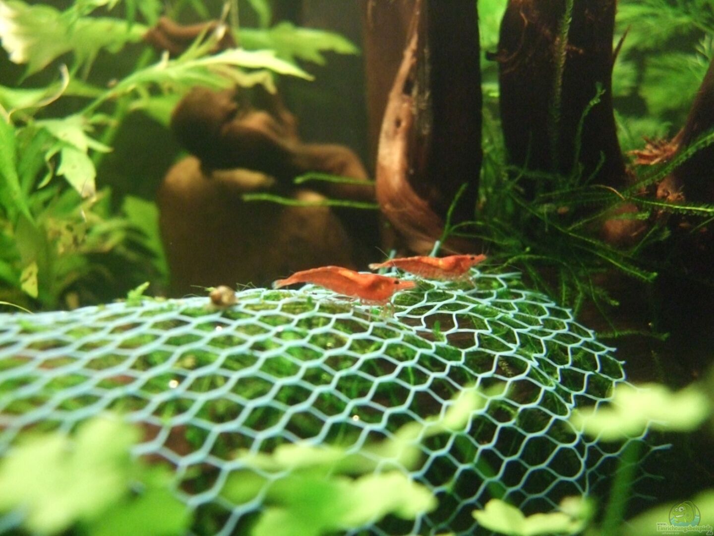Einziger Besatz: - ca. 15 Neocaridina heteropoda var. red (Red Fire) - es war mal für 6 Tage ein Pärchen Fundulopanchax gardneri im Becken. Wie ich vor ein paar Tagen festgestellt habe, sind jetzt ca. 5 Jungfische im Becken. Gefüttert werden diese mit Staubfutter.