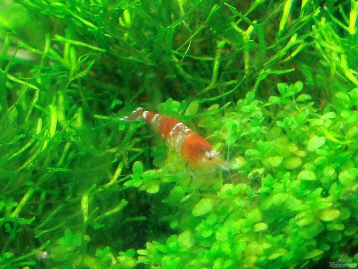 15 x Crystal Red (Caridina cf. cantonensis), 3 x Turmdeckelschnecke (Jungtiere bei Pflanzenkauf eingeschleppt; willkommene ??berraschung).