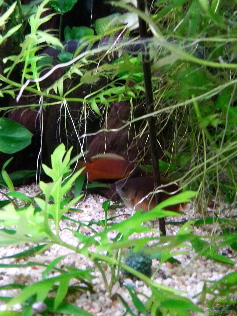2 Honigguramis Trichogaster Chuna 10 Amanogarnelen 2 Gelbe Zwergbuntbarsche Apistogramma Borellii (1/1) 10 Otocinclus 2 Trichogaster trichopterus var. Gold Beschreibung zu meinen Fischen: (Hier schreibe ich von selbst gemachten Beobachtungen und meinen daraus resultierenden Schlüssen. Fachwissen findet ihr im Netz und Literatur sicher reichlich. Da sich die Angaben je nach Quelle unterscheiden lasse ich diese hier aus.) Honigguramis / Trichogaster Chuna Das Pärchen [...]