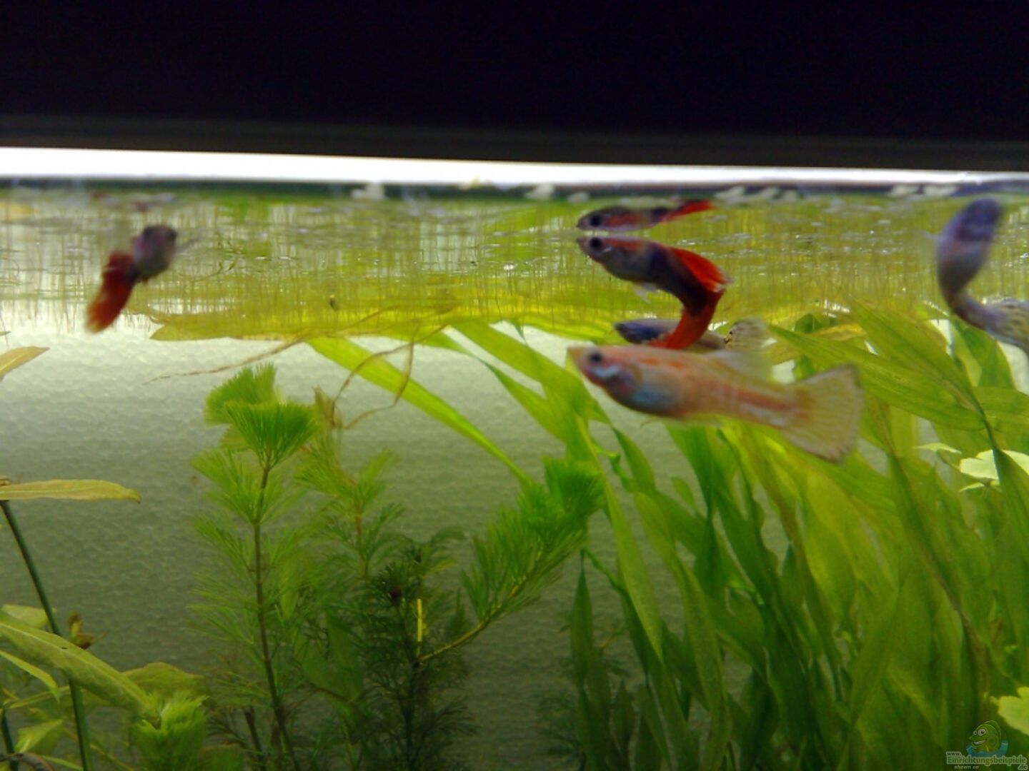 Guppys incl. Jungtiere 2x Siamesische Saugschmerle 1x L144 Mischling (Schwarz), ca 40 mm blaue Zwerggarnelen und andere unbekannte Arten 2x Metall-Panzerwels braune Antennenwelse
