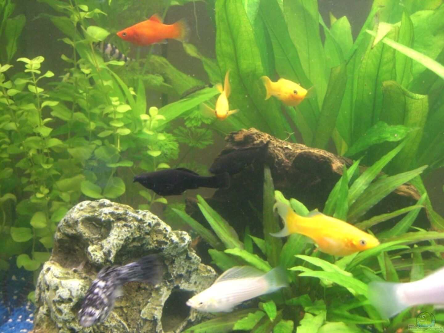 2 Skalare / Geschlecht konnte noch nicht ermittelt werden 1/1 Black Mollys 1/2 Silber Mollys 1/2 Lyra Gold Mollys 1 Korallenplaty 1/1 Ancistrus 2 Ancistrus Albino 1 Plecostomus gibbiceps (Wels) 3 Netzschmerlen 3 Dornaugen gefleckt 4 Schwanzfleck-Ohrgitter Saugwels 5 Siamesische Rüsselbarben