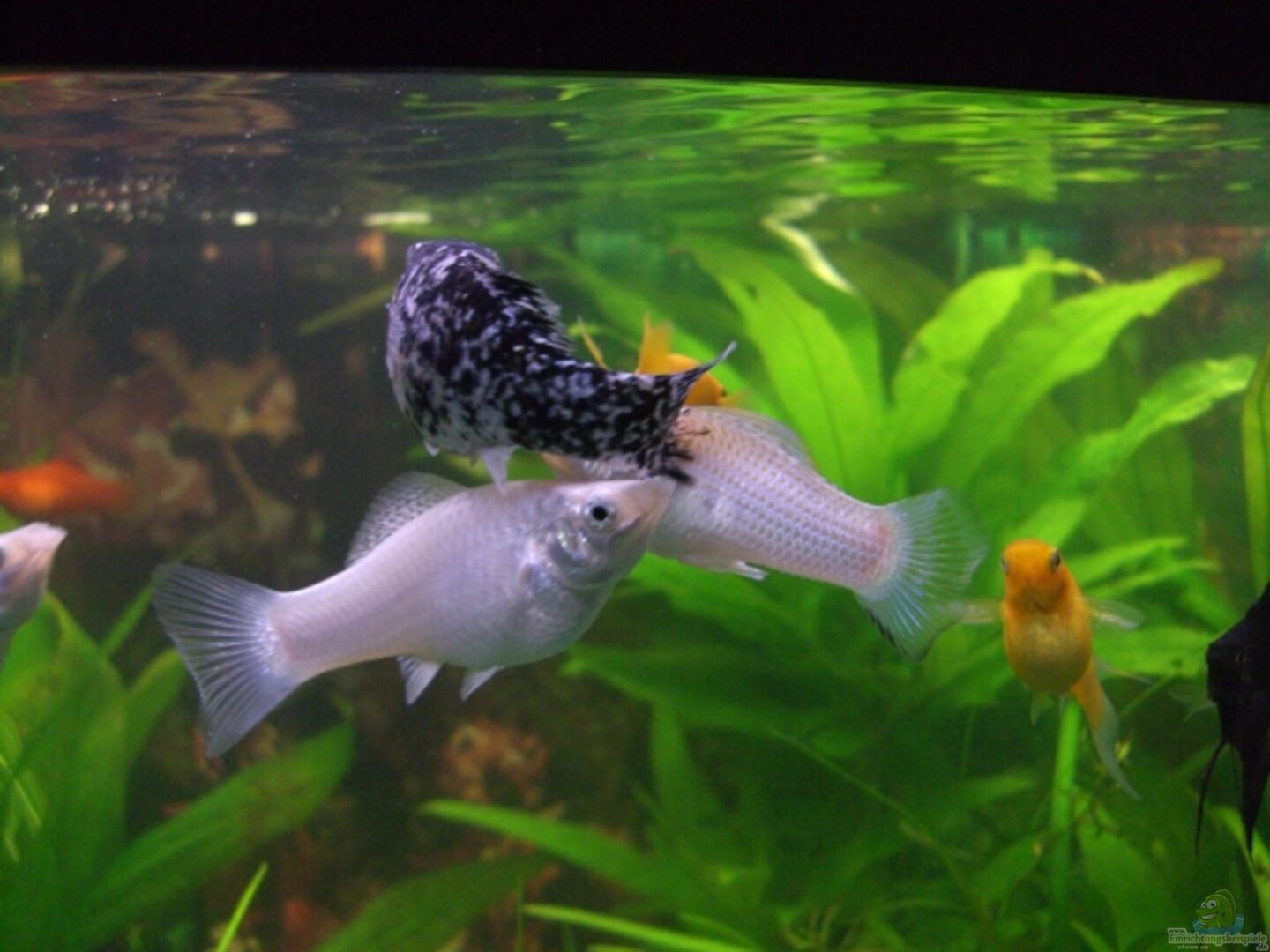 2 Skalare / Geschlecht konnte noch nicht ermittelt werden 1/1 Black Mollys 1/2 Silber Mollys 1/2 Lyra Gold Mollys 1 Korallenplaty 1/1 Ancistrus 2 Ancistrus Albino 1 Plecostomus gibbiceps (Wels) 3 Netzschmerlen 3 Dornaugen gefleckt 4 Schwanzfleck-Ohrgitter Saugwels 5 Siamesische Rüsselbarben