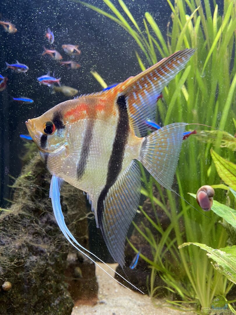 - 5 x Pterophyllum Scalare Amapa Red Back - 15 x Keilfleckbärblinge, Trigonostigma Heteromorpha - zwar aus Asien, aber passen m.E. in ihren Ansprüchen und optisch gut zu den Skalaren - 6 x Smaragd-Rasbora, Microdevario Kubotai - die sollten hier eigentlich gar nicht rein, sind aber durch einen Fehler beim Umsetzen aus dem alten kleineren Becken hier gelandet. Es sind extrem flinke, aktive Kerlchen, die ich nicht mehr rausfangen kann. Obwohl sie so klein sind, sollten diese Fische wirklich [...]