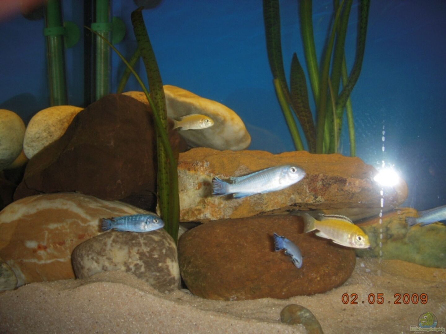 4 Gelber Labidochromis / Yellow Labidochromis caeruleus (Jungtiere ?m/?w) 5 Stahlblauer Buntbarsch Pseudotropheus Socolofi (1m/4w)