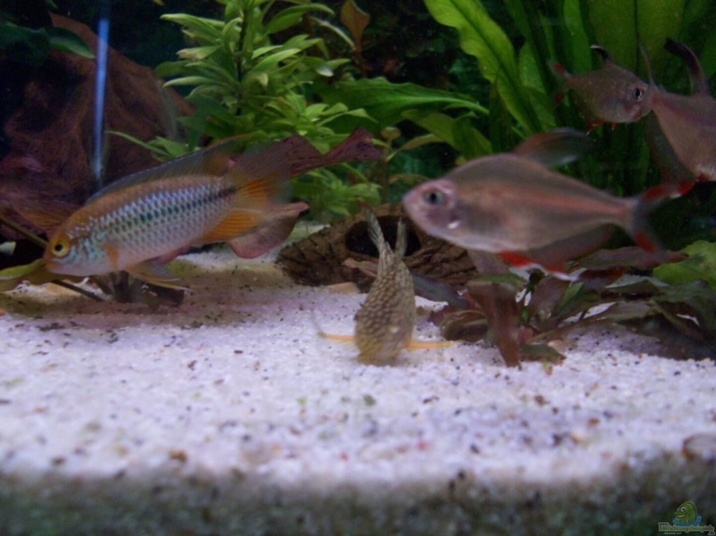 1 Paar Glänzender Zwergbuntbarsch 5 Schmucksalmler 10 Zitronensalmler 10 Neons 3 Silberbeilbauch und 2 Mamorbeilbauch 4 Sterbas Panzerwelse 7 Amano-Garnelen