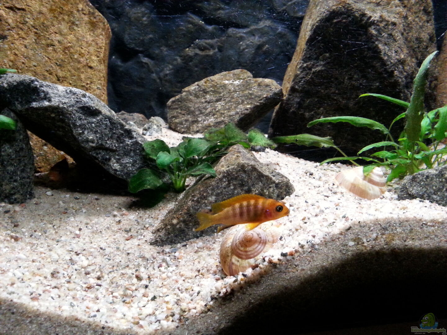 In meinem Becken haben 10 Labidochromis sp. "hongi" Red Top ein neues Zuhause gefunden. Sie werden nicht sehr gro??, die Männchen 10 cm und die Weibchen 8 cm. Sie sind jetzt seit 3 Wochen im Becken und leider noch etwas schüchtern. Auch beim Füttern kommen sie erst langsam heraus. Ich hoffe das legt sich in den nächsten Wochen. Das Geschlecht ist noch nicht bei allen bestimmbar, da die Männchen in der "Pubertät" ihre Streifen verlieren und sich erst dann abzeichnet [...]