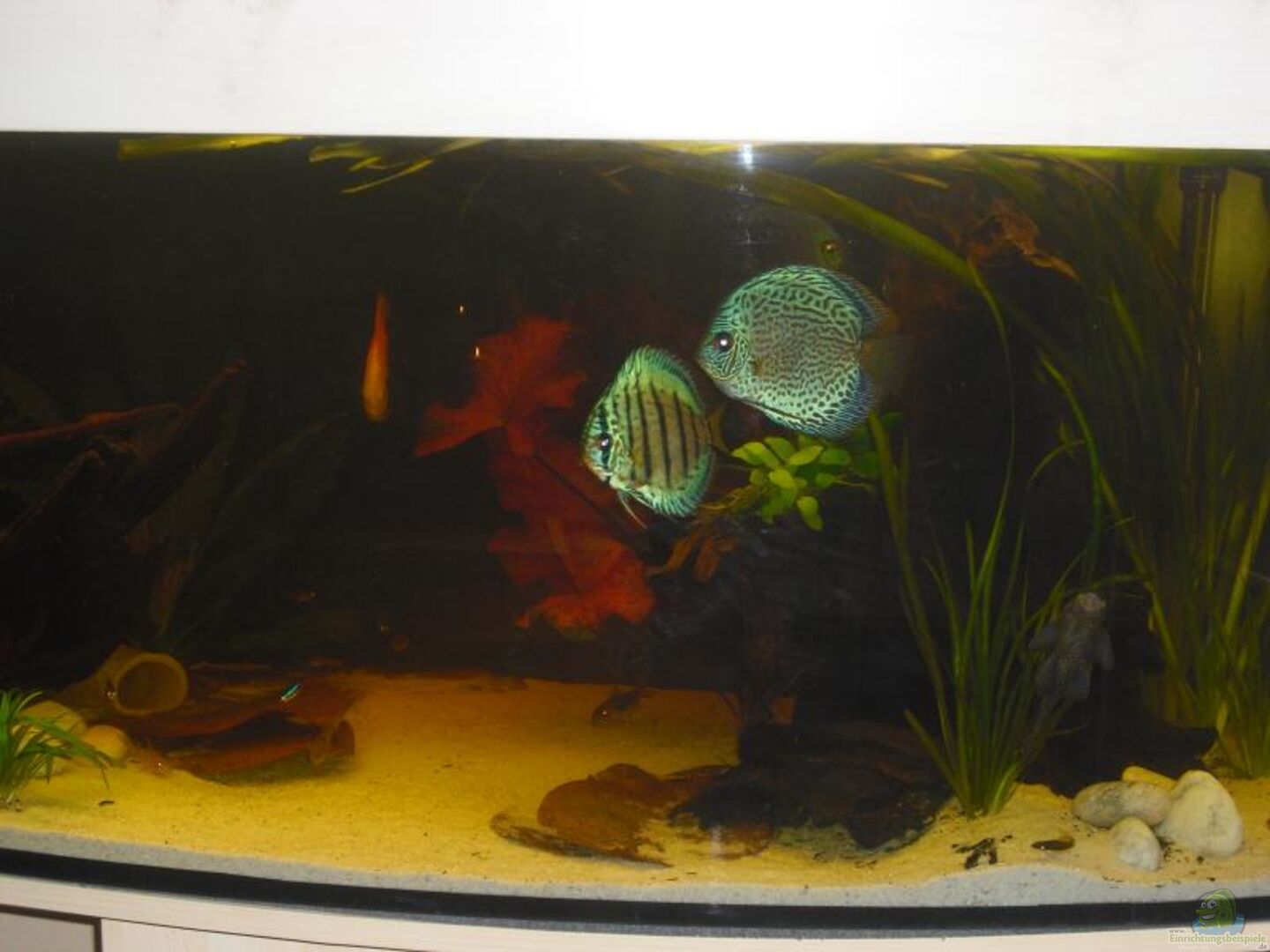 4 Diskus (2x Brillianttürkis, 1x Blue Diamond, 1x Rot-Orange) 16 Panzerwelse 1 Antennenwelse w 5 Ohrgitterharnischwelse 2 Schmetterlingsbuntbarsche (Pärchen) 5 Neonsalmler (werden nicht mehr aufgestockt)