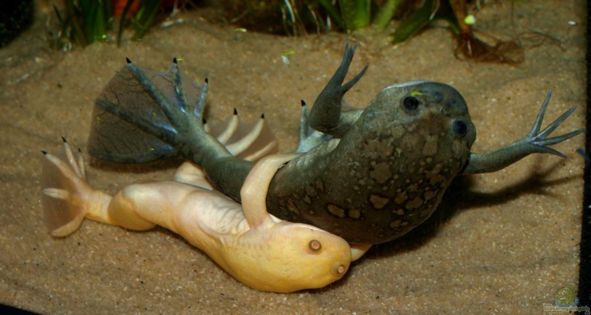 1.3 Xenopus laevis. Der aus Südafrika stammende Glatte Krallenfrosch (Anura: Pipidae) erreicht eine Kopf-Rumpf-Länge von ca. 6-8 (10) cm (Männchen) bzw. 8-12 (15) cm (Weibchen). Er besiedelt in der Natur verschiedenste stehende und langsam flie??ende Gewässertypen, meist mit feinem Bodengrund, und gilt bezüglich der Wasserwerte als äu??erst anpassungsfähig. Die Tiere leben vollständig aquatil, können aber bei günstiger Witterung kurze Strecken über Land zurücklegen; in der Wohnung [...]