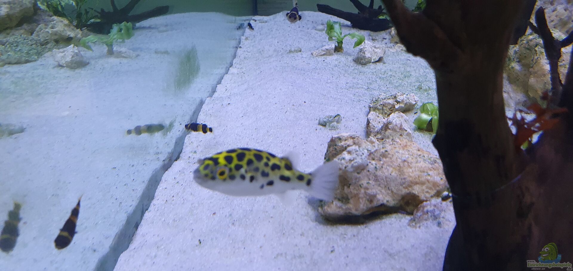 5x Tetraodon nigroviridis (grüner Kugelfisch) 1x Chelonodon patoca ( Milk Spotted Puffer ) 6x Poecilia sphenops ( Black Molly ) 10x Brachygobius doriae ( Goldringelgrundel )