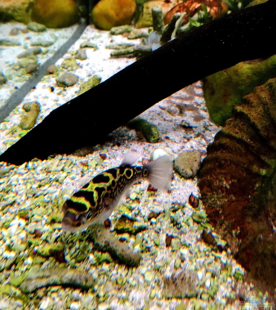 Das Becken ist ein reines Art-Aquarium, mit 2 Kugelfischen (Tedradon Biocellatus). Die Fische sind untereinander sehr friedlich, keine Spur von Aggression (was bei Kugelfischen allgemein eher selten ist) !
