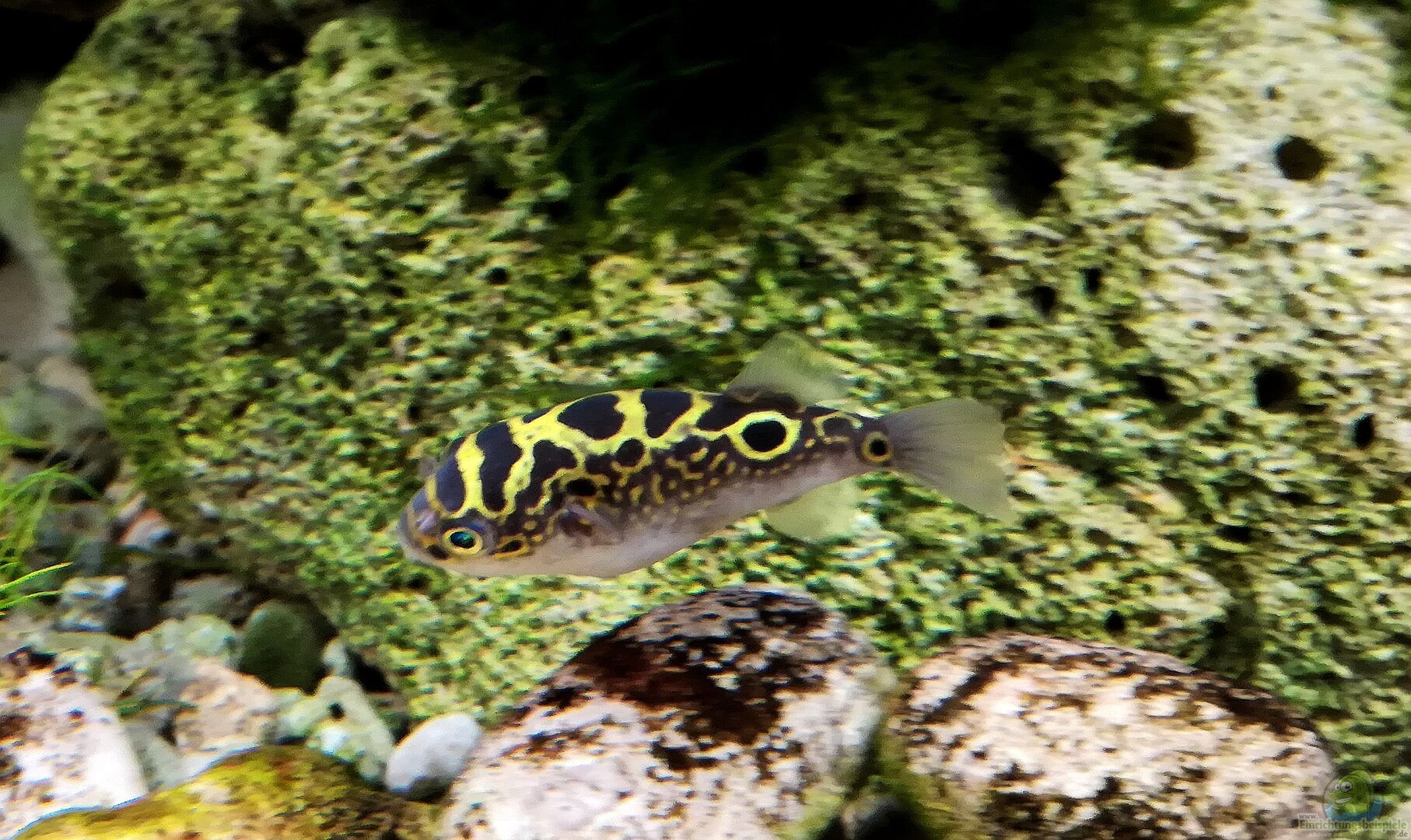 Das Becken ist ein reines Art-Aquarium, mit 2 Kugelfischen (Tedradon Biocellatus). Die Fische sind untereinander sehr friedlich, keine Spur von Aggression (was bei Kugelfischen allgemein eher selten ist) !
