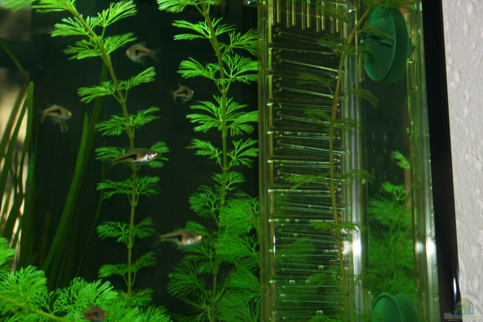 30 St. Keilfleckbärblinge 5 St. Rüsselbarben (sind in ein grö??eres Becken umgezogen) 5 St. Panzerwelse 1 Paar Schmetterlingsbuntbarsche (gold) (Mikrogeophagus ramirezi) 1 Paar Zwergfadenfische (Colisa labiosa) 9 St. Amanogarnelen