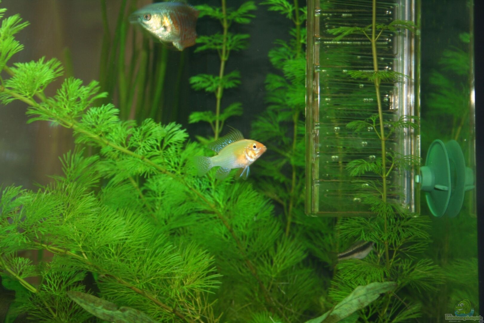 30 St. Keilfleckbärblinge 5 St. Rüsselbarben (sind in ein grö??eres Becken umgezogen) 5 St. Panzerwelse 1 Paar Schmetterlingsbuntbarsche (gold) (Mikrogeophagus ramirezi) 1 Paar Zwergfadenfische (Colisa labiosa) 9 St. Amanogarnelen
