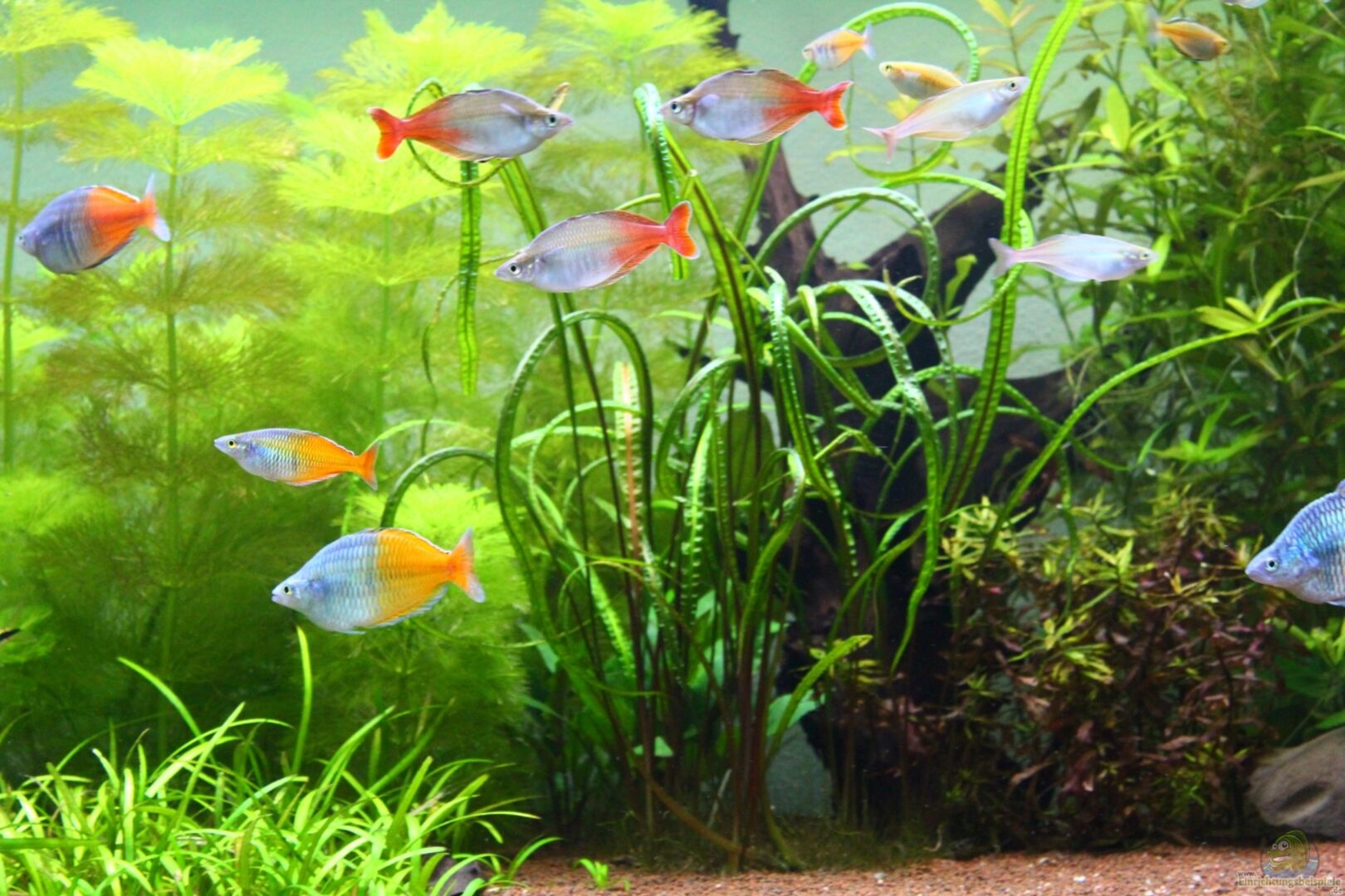 Melanotaenia boesemani 28 Stück, 20 Männchen und 8 Weibchen Chilatherina bleheri 8 Stück, 5 Männchen 3 Weibchen Melanotaenia Trifasciata (Goyder River) 15Stück, geschlechtsangabe noch nicht 100%ig möglich da noch jung und erst ca. 2 cm dürfte aber ziemlich halbe / halbe sein. Melanotaenia Splendida Inornata 20Stück, 10 Männchen und 10 Weibchen. Boden: Sturisoma Aureum derzeit 3 Stück Garnelen, Red Fire weiterhin kleine Turmdeckelschnecken und Rote [...]