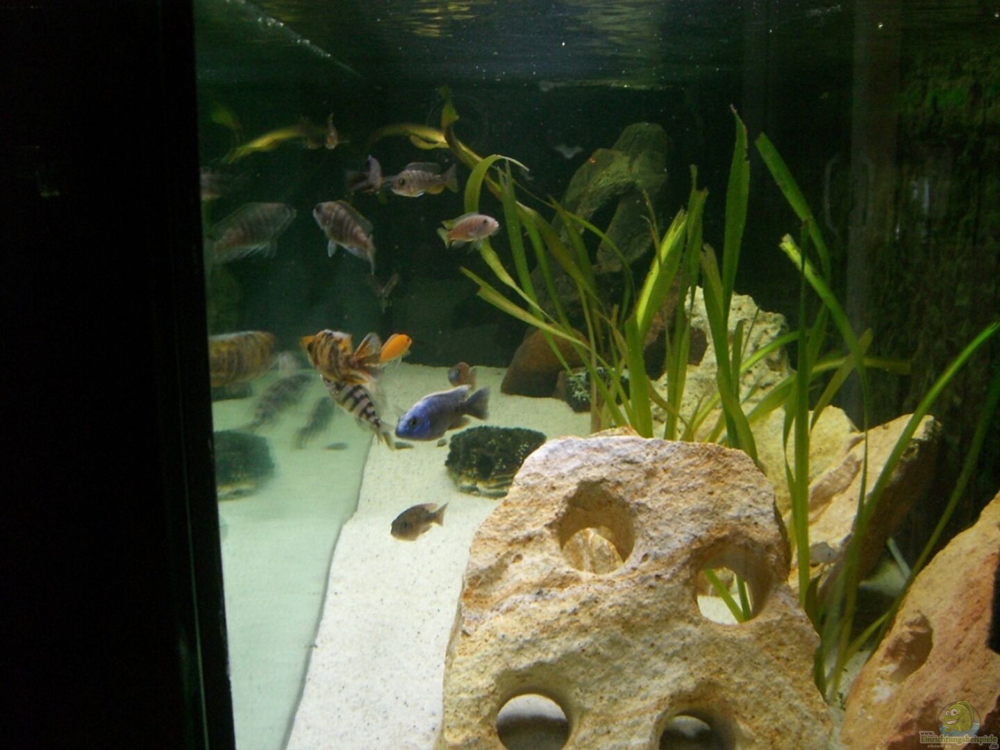 Hier findest Du traumhaft schöne Aquarien, die mit Buntbarschen der Art Champsochromis caeruleus (Forellenbuntbarsch) aus dem Malawisee besetzt sind.