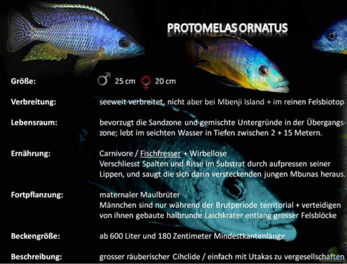Hier findest Du alle wichtigen Infos zur Haltung und Anregungen zum Einrichten eines Aquariums für Placidochromis johnstoni solo aus dem Malawisee.