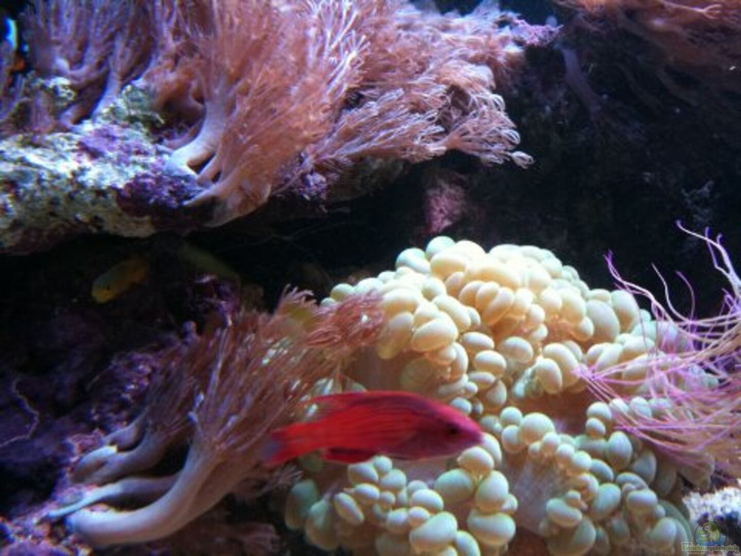 Fische: 2x Amphiprion percula 1x Centropyge bispinosa 1x Canthigaster valentini 1x Acanthurus pyroferus 2x Chrysiptera parasema 1x Salarias fasciatus 1x Dascyllus melanurus ( kommt demnächst in ein anderes Becken) 1x Paracheilinus cyaneus Korallen: Sarcophyton ehrenbergi, Xenia elongata, Echinopora lamellosa, Plerogyra sinuosa, Seriatopora caliendrum, Montipora Sp. flachwachsend, Duncanopsammia axifuga, Hydnophora grandis, Euphyllia paraancora, [...]