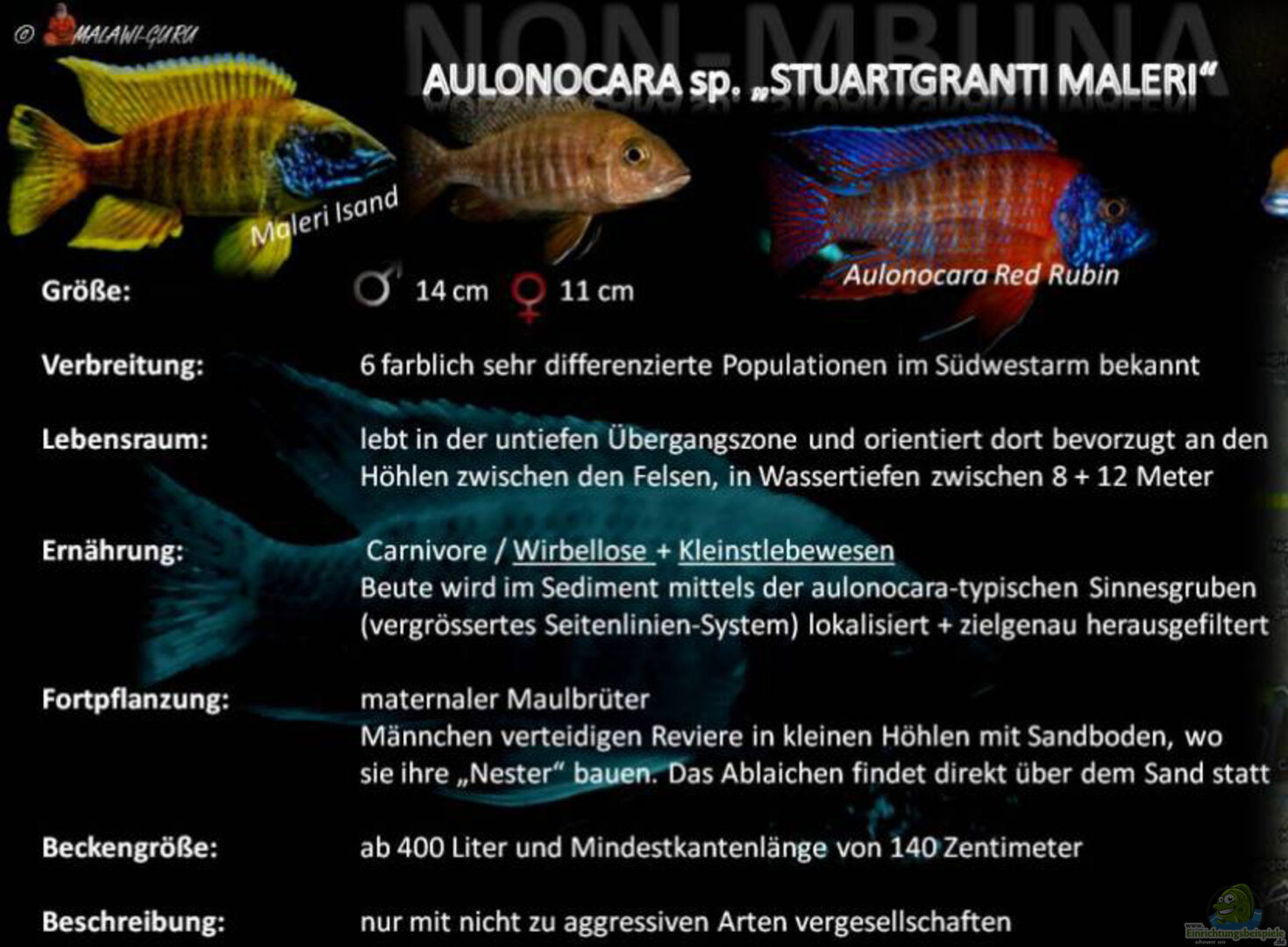 Hier findest du alle wichtigen Infos und viele Beispiele für die Einrichtung deines Aquariums für Metriaclima (Maylandia) mbenjii aus dem Malawisee.