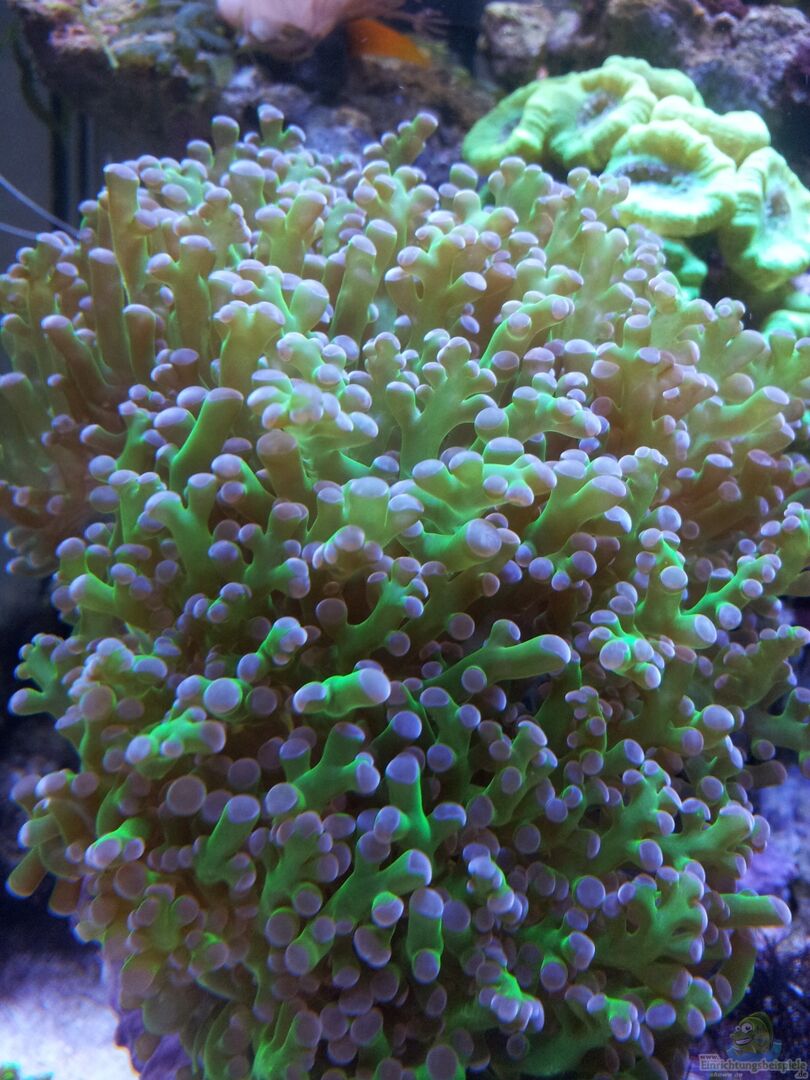 2 Turboschnecken 2 Gelbschwanzdemoisellen 2 Weissbandpuzergarnelen 1 bicolor blenny Koralllen: Xenie (elongata) Caulastrea (Supergrün) Caulastrea (mintgrün) Pseudopterogorgia bipinnata - Feder-Gorgonie Euphyllia cristata - Grüne Trauben-Koralle Parazoanthus sp. 02 - Grün-gelbe Krustenanemone Zoanthus sp. 35 - rote Krustenanemone Scheibenanemone (super grün) Capnella imbricata - Bäumchenweichkoralle