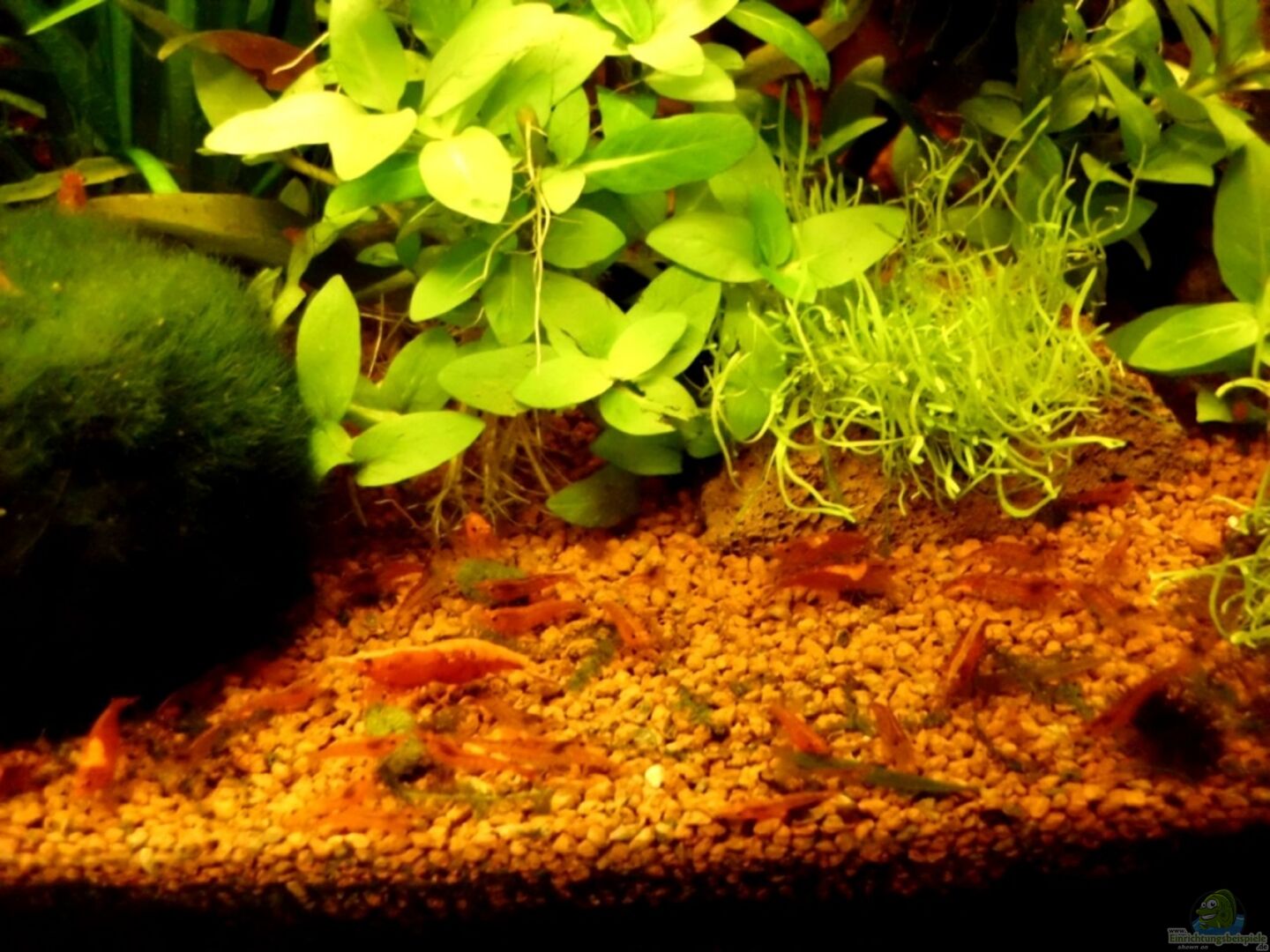 Sakura Zwerggarnelen ca 8 - 10 Stck, der Nachwuchs lie?? nicht lange auf sich warten und krabbelt schon fröhlich im Becken Im Moment kann ich meinen Besatzgrö??e nicht genau bestimmen, ich würde sie auf ca 50 - 60 schätzen. Ich glaube, so langsam muss ich mir mal etwas überlegen, wenn das so weitergeht.