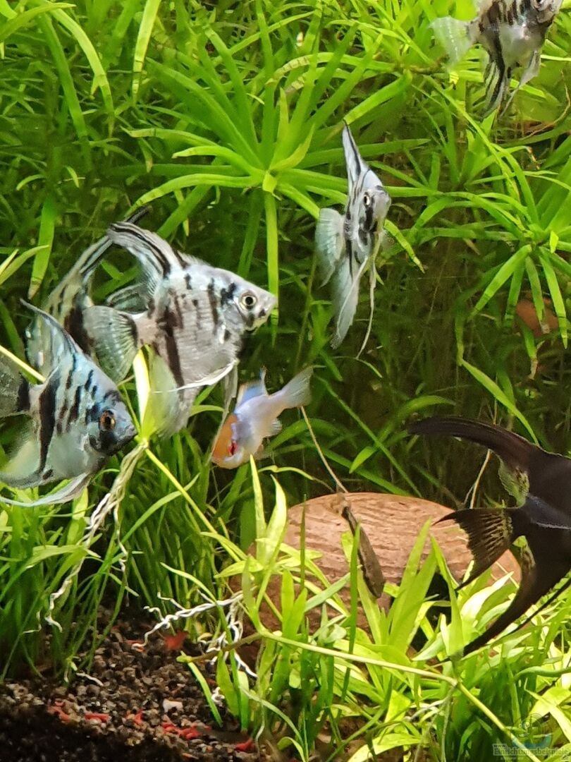 Fische: Neonsalmler (Paracheirodon innesi) Skalar 'Schwarz', Pterophyllum scalare Marmor-Skalar, Pterophyllum scalare Schmetterlingsbuntbarsch " electric blue" - Microgeophagus ramirezi - Pärchen Marmorierter Panzerwels, Corydoras paleatus Ohrgitterharnischwels, Otocinclus affinis Schnecken: Anthrazit-Napfschnecke / Stahlhelmschnecke - Neritina pulligera Orange Track Rennschnecke - Neritina turrita Aus altem Aquarium: Garnelen "Red bee" [...]