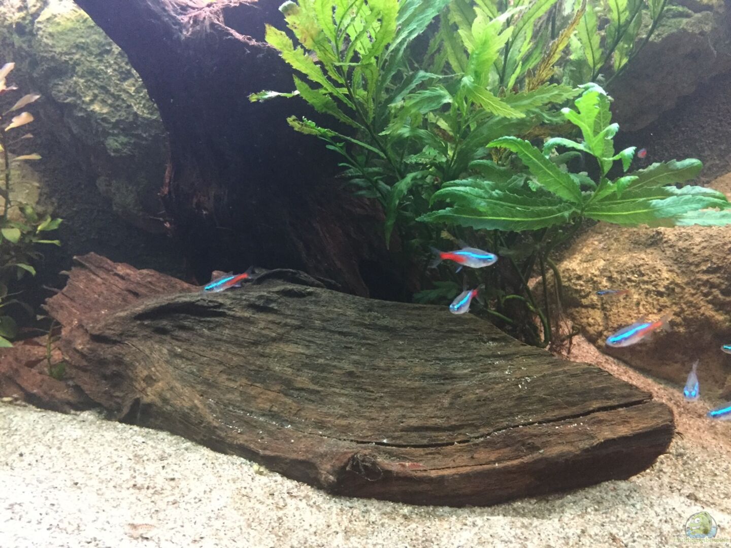 16 Neone 4 Otocinclus Etwa 20 rote Garnelen Eine Zebraschnecke Der Besatz soll mit noch 10 Neonen vervollständigt werden.