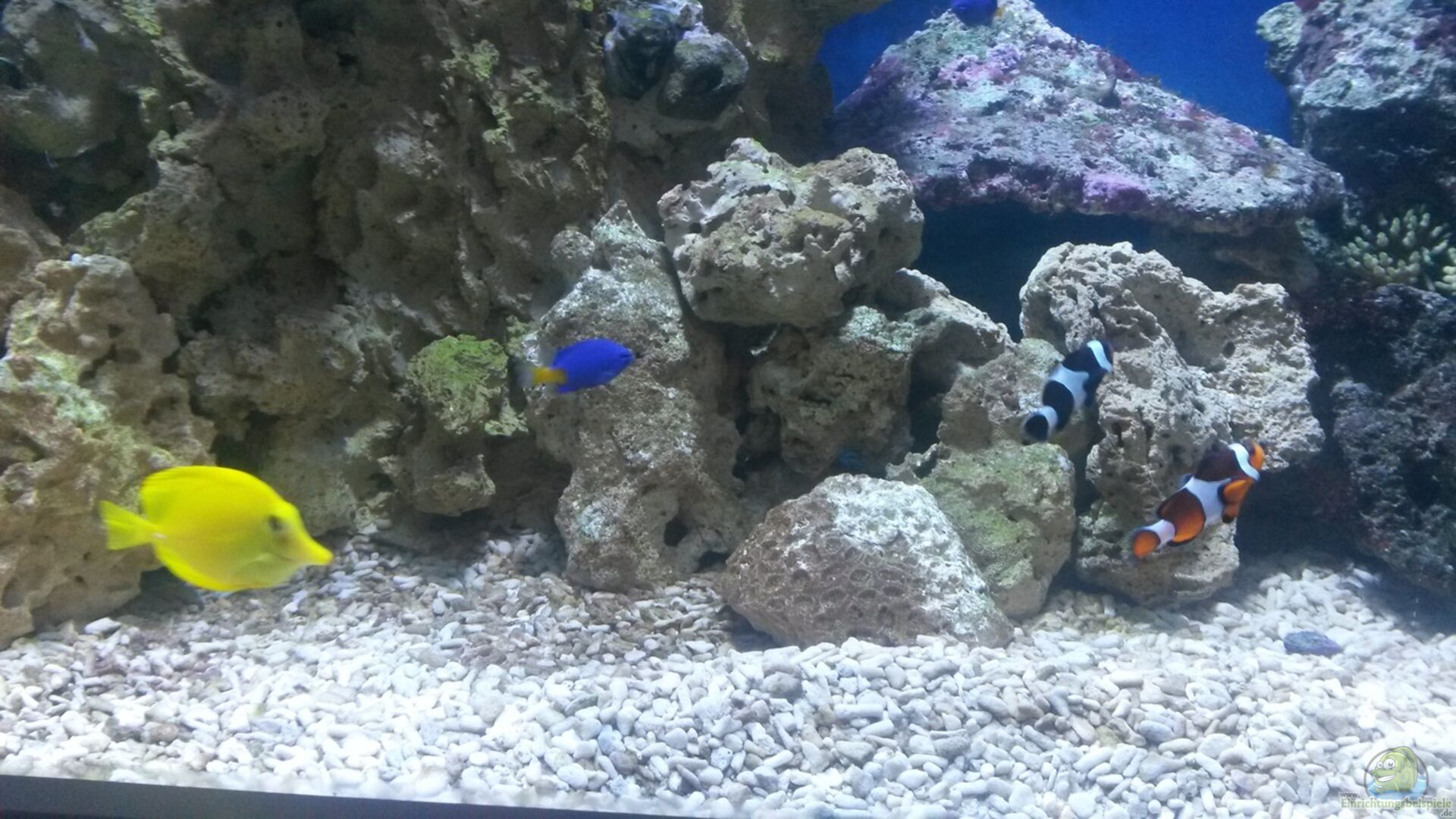 10x Einsiedlerkrebse + div. Seesterne + div. Schnecken 1?? Kardinalsgarnele - Lysmata debelius 2x Zitronenflossen-Doktorfisch - Zebrasoma flavescens 2x Riffbarsch Gelbschwanzdemoiselle - Chrysiptera parasema 4x falscher Clownfische - Amphiprion ocellaris (davon 2 schwarze) 6x grünes Schwalbenschwänzchen - Chromis viridis 1x Kardinalbarsch - Pterapogon kauderni (ein zweiter ist in Planung) 1x Blauer vermute Riffbarsch 1x Acreichthys tomentosus - Seegras- oder Tangfeilenfisch