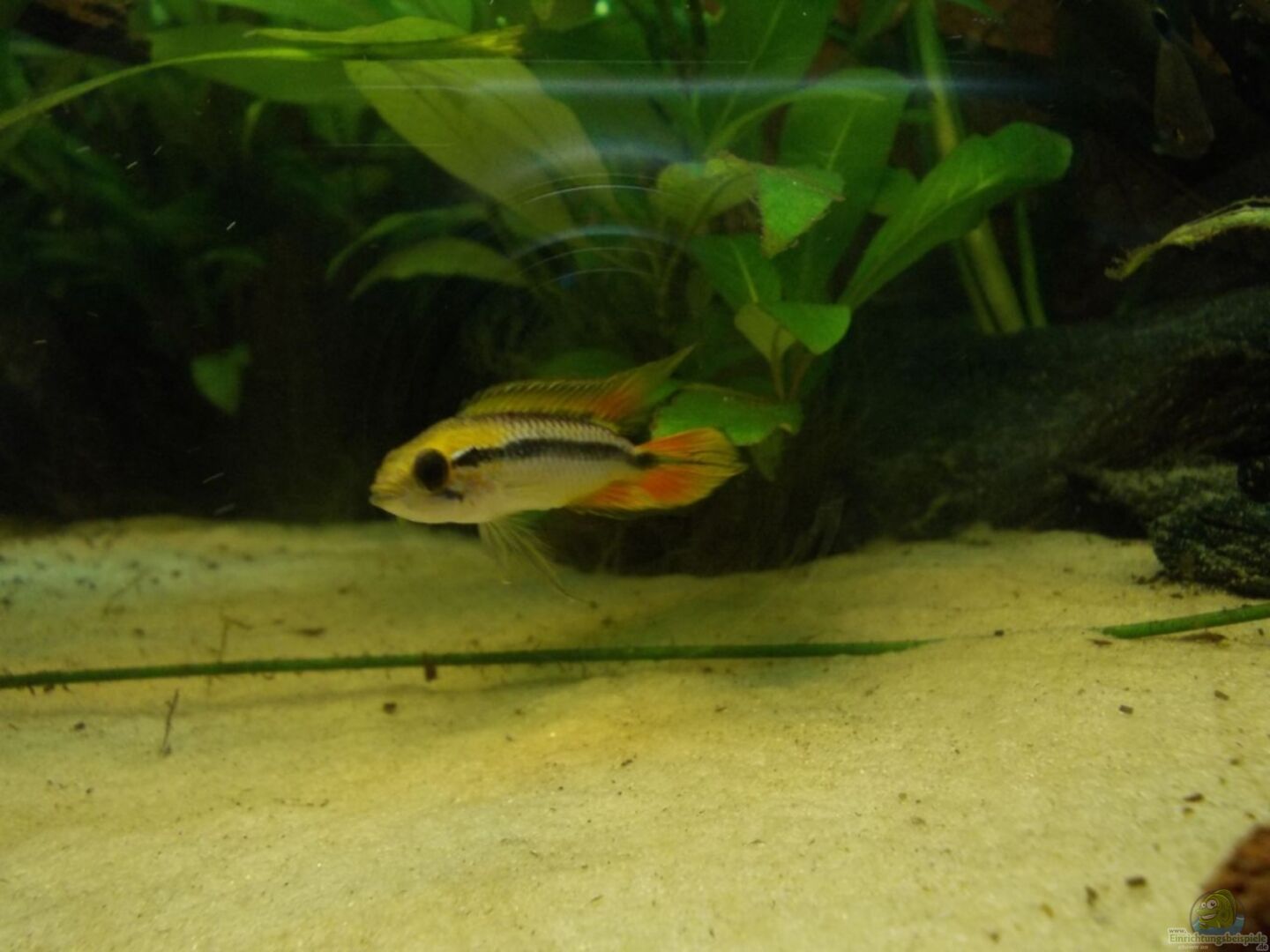 1/1 Apistogramma agassizii Handelsname: Agassiz - Zwergbuntbarsch Herkunft: Südamerika Lebensraum: Uferzone mit Höhlen und Fallaub Grö??e: Männchen ca. 10cm, Weibchen ca. 8cm Futter: Lebend- und Trockenfutter Becken: ab 80 Liter Geschlechtsmerkmal: Männchen werden erheblich grö??er als die gelbraungefärbten Weibchen Fortpflanzung: Höhlenbrüter, Männchen und Weibchen bewachen das Gelege soz. Verhalten: Die relativ friedliche Art lässt sich [...]