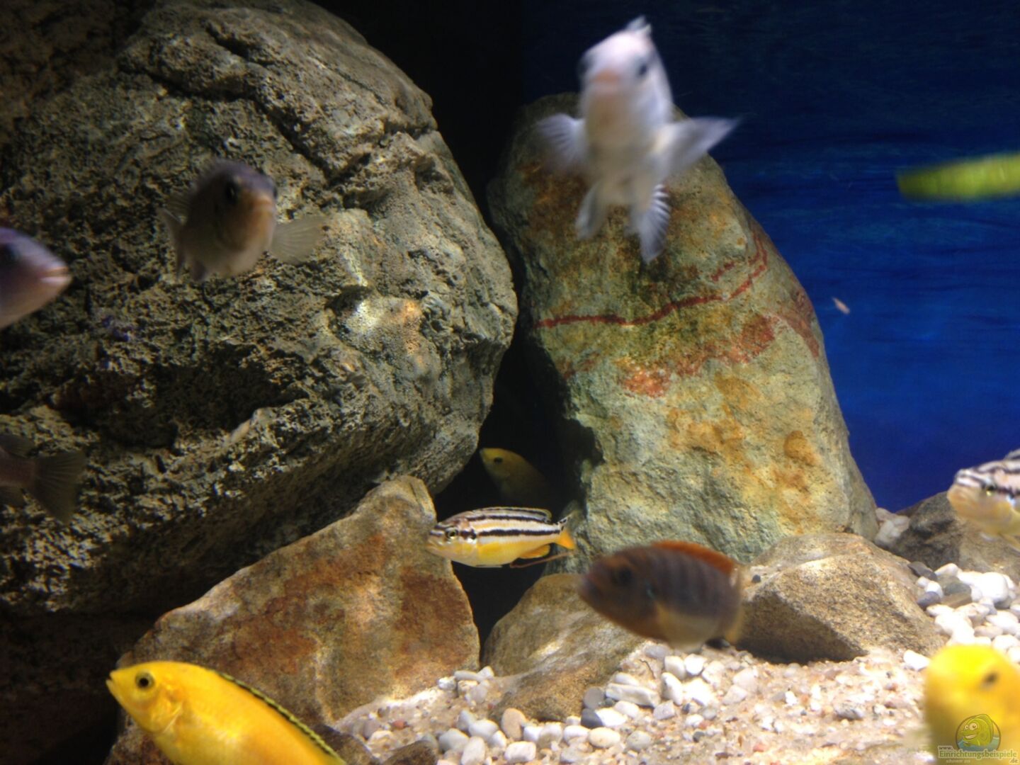 Metriaclima aurora "Likoma" 2/5 (seichte ??bergangszone) Melanochromis auratus 1/5 (sedimentfreie Felszone) Pseudotropheus crabro 0/2 (Fels/??bergangszone) Pseudotropheus acei "Luwala" 1/2 (Holz und ??ste in ??bergangszone/Sandzone) Pseudotropheus socolofi 1/2 (??bergangszone) Lab. caeruleus "Kakusa" 2/4 (sedimentreiche Felszone) Lab. mbamba "Mbamba Bay" 1/2 (sedimentreiche Felszone) Placidochromis tae. "red empress" 1/2 (sedimentreiche [...]