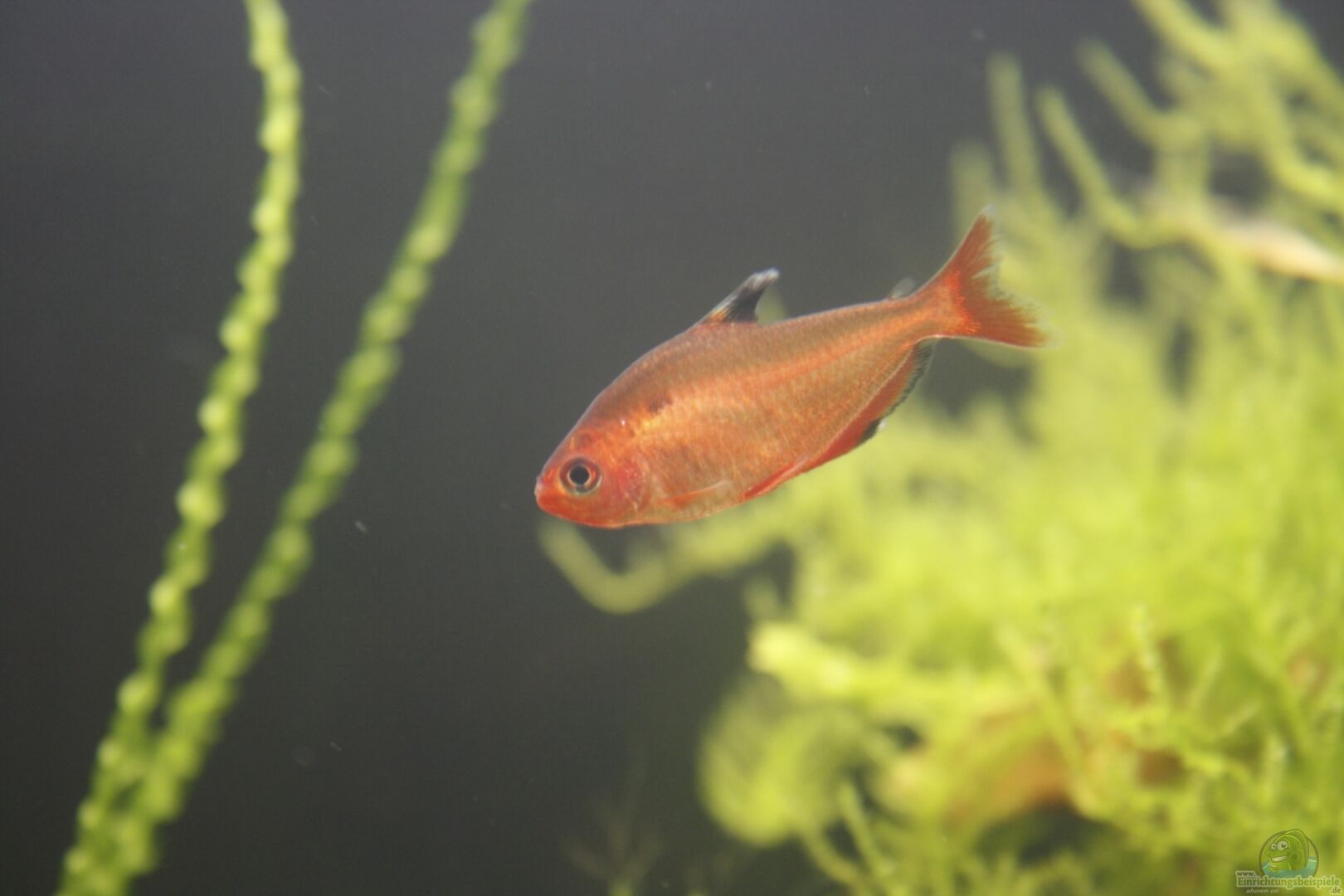 Fische: 22 Hyphessobrycon eques - Blutsalmer werden im Laufe der Zeit auf eine Schwarmgrö??e von 30 Stk aufgestockt. Ordnung: Salmler (Characiformes) Familie: Echte Salmler (Characidae) Vermehrung: Freilaicher Alter: bis 4 Jahre Aquariengrö??e: 150 Liter Wasserregion: mitte Heimat: Südamerika. Südlicher Amazonas. Rio Gua- poré, Rio Paraguay in Brasilien. Pflanzenrei- che Gewässer. Kennzeichen: Länge 3-4 cm, Weibchen etwas blasser und fülliger [...]
