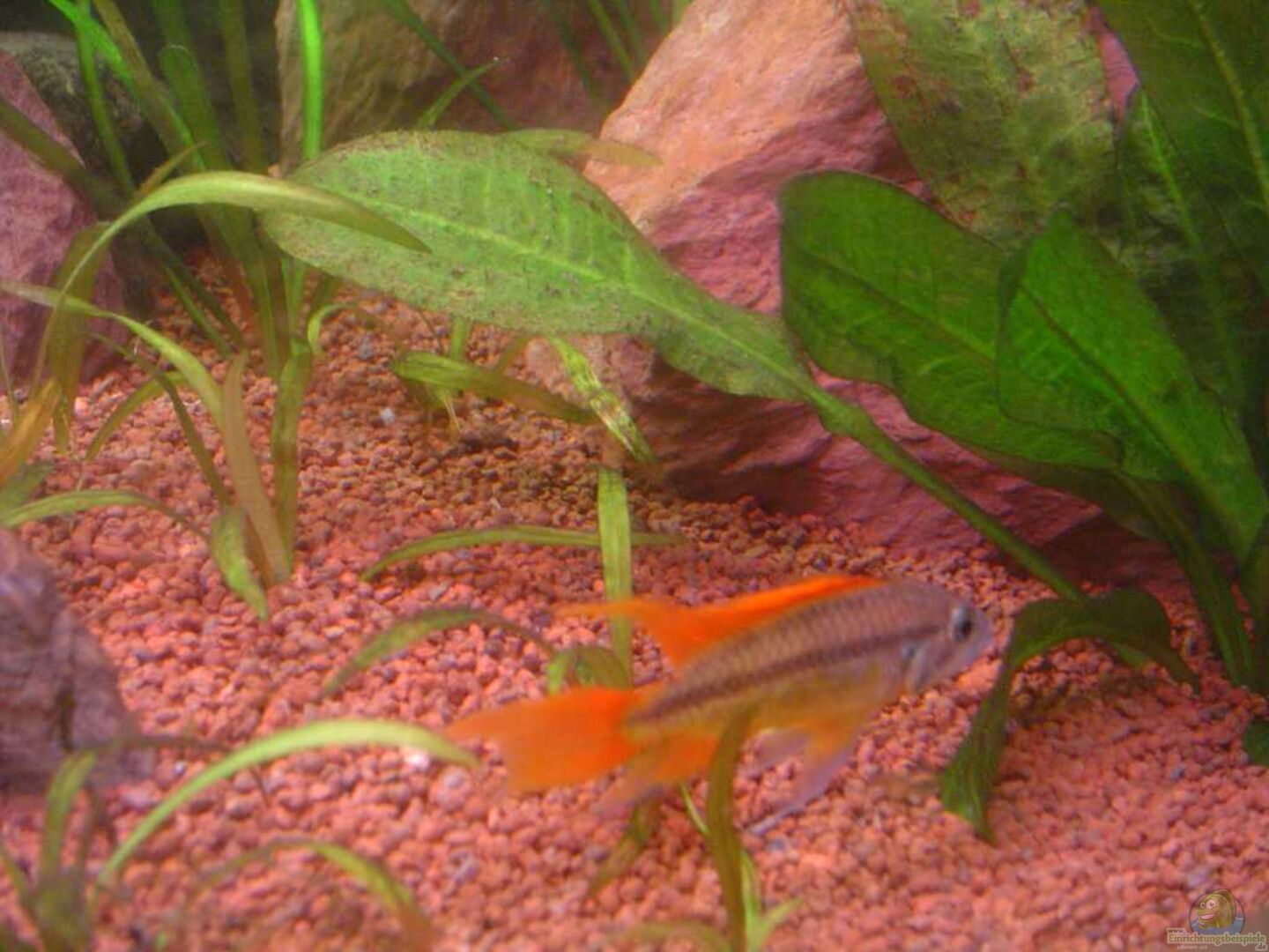 20 Paracheirodon axelrodi Stamm: Chordatiere (Chordata) Klasse: Fische (Pisces) Ordnung: Salmlerähnliche Fische (Characiformes) Unterordnung: Salmlerartige (Characoidei) Familie: Salmler (Characidae) Unterfamilie: Cheirodontinae Grö??e: 5 cm Erreichbares Alter: ca. 10, 5 Jahre * Geschlechts- unterschied: W fülliger Ersteinführung 1956 Futter: Lebend- und Trockenfutter Aquarium: min. 60 cm (ca. 54 - 63 l) Beckenbereich: Mitte Sozialverhalten: Schwarmfisch [...]
