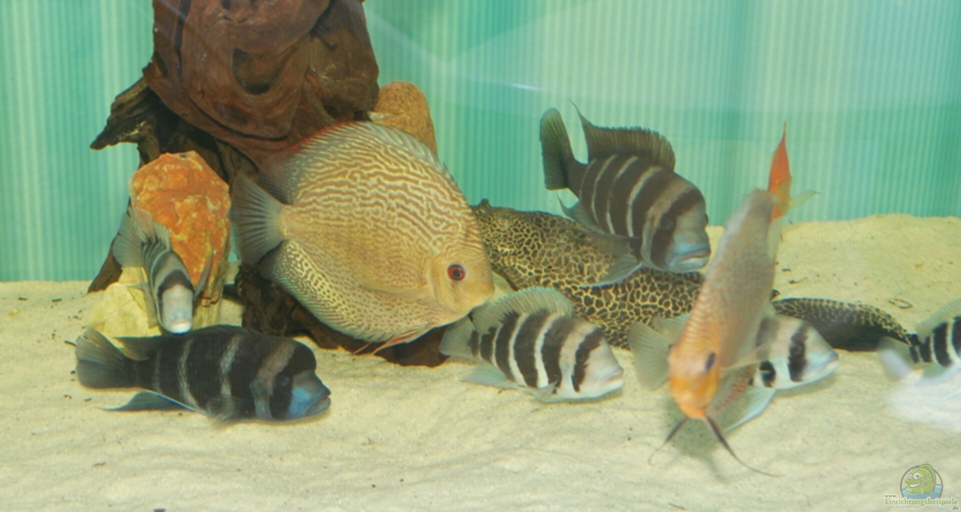 1 x Potamotrygon Motoro (ca. 30-35 cm) 2x Potamotrygon Leopoldi (ca. 25/ 20 cm) 1 x Panque nigrolineatus (ca. 12 cm) 1 x Pseudoplatystoma fasciatum / Tigerspatelwels (ca. 40 cm) 1 x Scleropages Jardini (ca. 15 cm) 1 x Arowana Gabelbart (ca. 40 cm) 4 x Cichla monoculus (ca. 15 cm) 1 x Wabenschilderwels ca. 46 cm gro?? die anderen Fische die Ihr seht wie Disken oder Skalare oder andere Welse sind nicht von mit nur zu Pflege weil ein 1000 Liter Becken bei einem Freund gerissen [...]