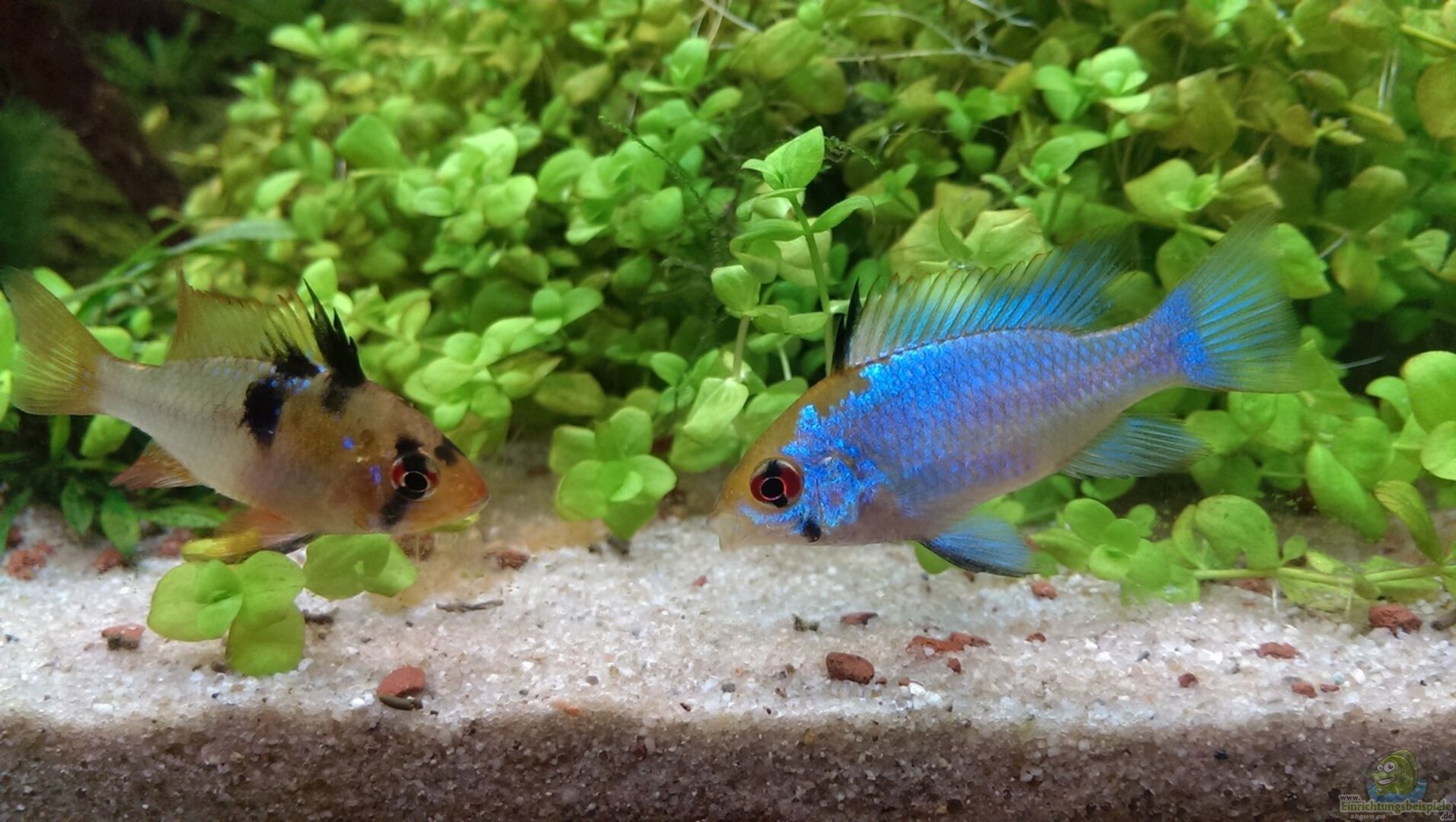 30 x Roter Neon 5 x Otocinclus 5 x Panda Panzerwelse 1 Paar Agassiz Buntbarsche 1 Paar Schmetterlingsbundbarsche (davon das Männchen Electric blue) 4 Dalmatiner Mollys (aber nur für 4 Wochen)