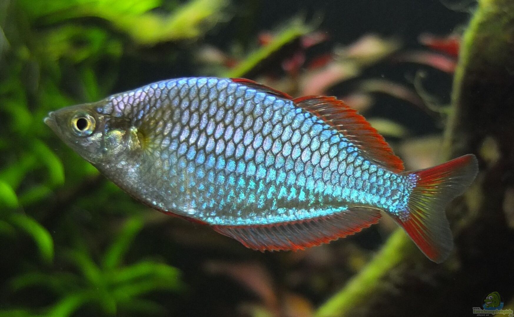 1. 12 Melanotaenia praecox - Diamantregenbogenfisch (6M/6W) Weitere Namen lauten Zwerg-Neon-Regenbogenfisch oder englisch Dwarf Rainbowfish Der Name Melanotaenia kommt aus dem lateinischen bzw. griechischen Wortschatz und bedeutet schwarze Binde oder Streifen. Es verweist auf den häufig in dieser Familie anzutreffenden schwarzen Längsstreifen. Das Wort praecox bezieht sich darauf, da?? diese Art sehr früh einen hohen Rücken entwickelt, wie [...]