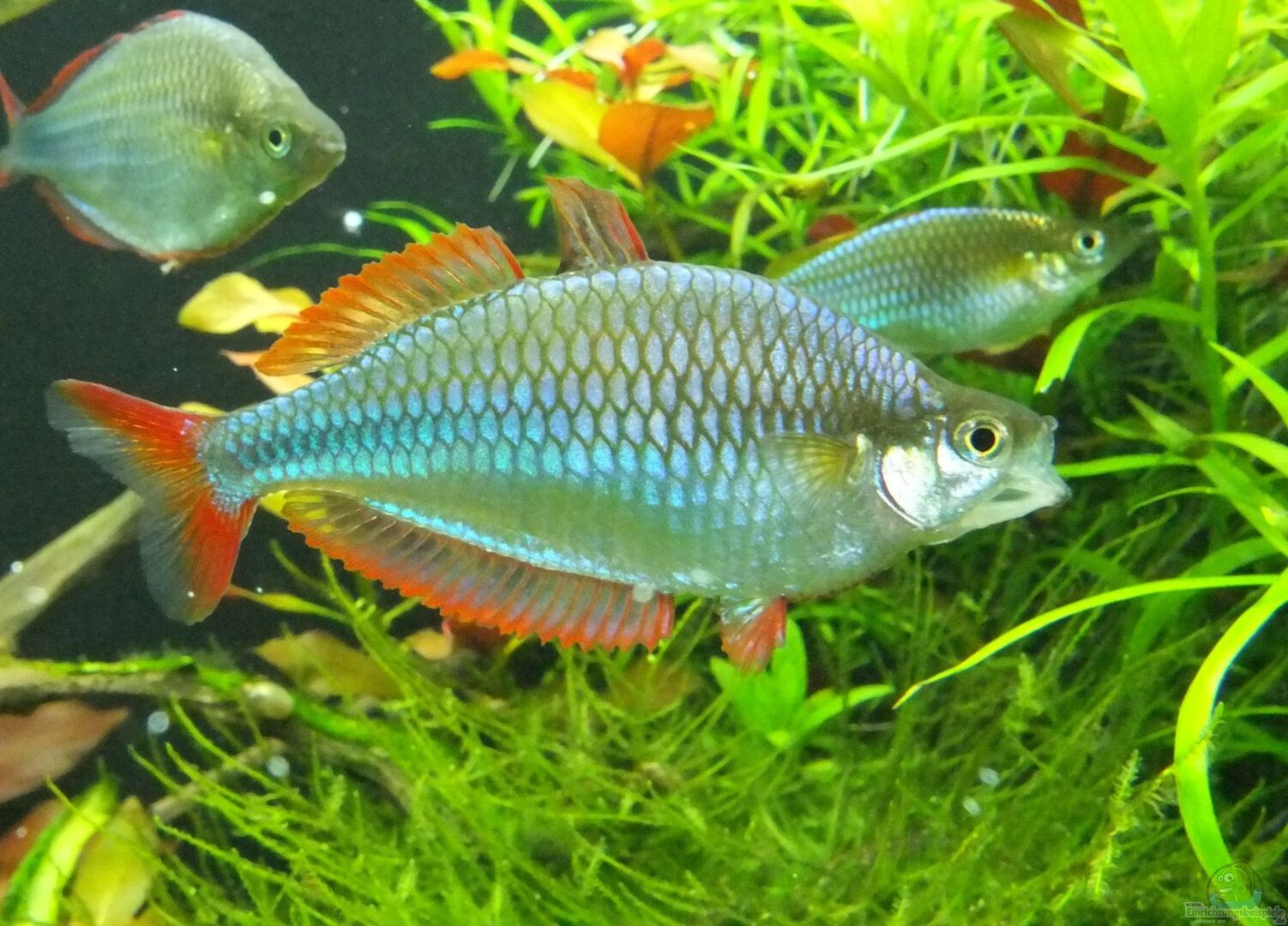 1. 12 Melanotaenia praecox - Diamantregenbogenfisch (6M/6W) Weitere Namen lauten Zwerg-Neon-Regenbogenfisch oder englisch Dwarf Rainbowfish Der Name Melanotaenia kommt aus dem lateinischen bzw. griechischen Wortschatz und bedeutet schwarze Binde oder Streifen. Es verweist auf den häufig in dieser Familie anzutreffenden schwarzen Längsstreifen. Das Wort praecox bezieht sich darauf, da?? diese Art sehr früh einen hohen Rücken entwickelt, wie [...]