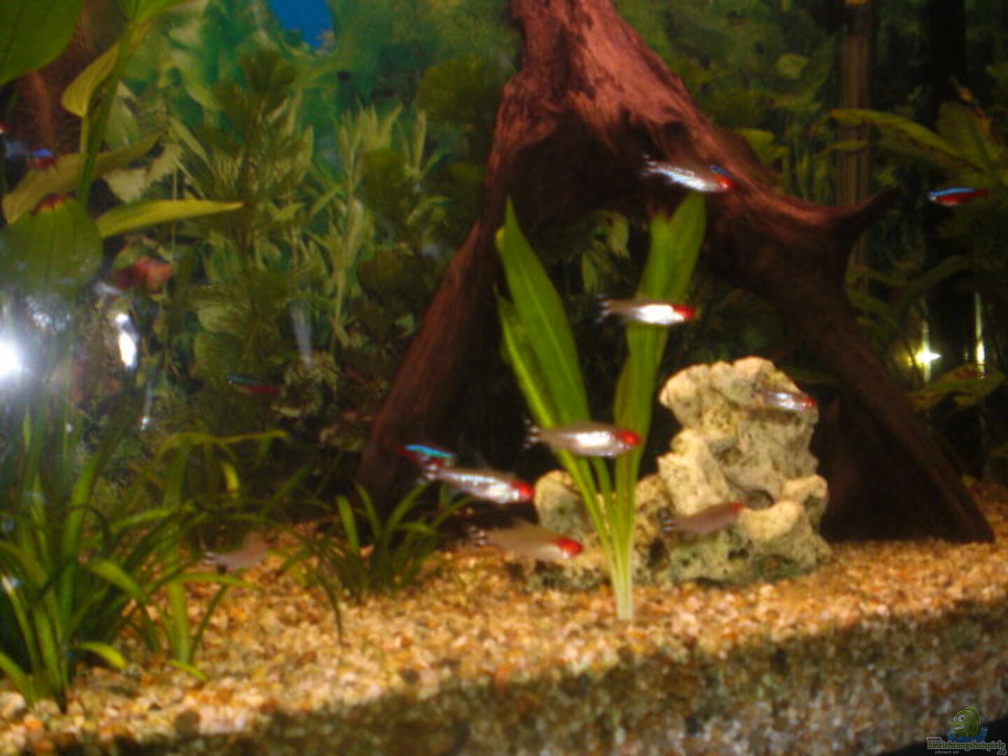 Besatz weniger als optimal, bin aber dabei das zu ändern 8 Rote Neon 14 Guppys 2 Antenenwelse 2 Mosaik-Fadenfische 2 Skalare 11 Rotkopfsalmler 1/1 m/w Purpurprachtbarsch 3 orangeflossen Panzerwelse 1 Marmorierter Beilbauch ca. 12 Armanogarnelen 3 Turmdeckelschnecken fragt mich bitte nicht wieso aber der Vorbesitzer hatte das Becken 4 Jahre lang laufen, aber mit dem Besatz lag er voll daneben. Werde mich auf jeden Fall von den 2 Welsen trenne. Und den Rest [...]