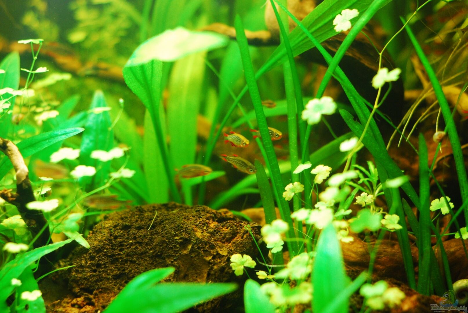Die ursprüngliche Idee war es, nur kleinbleibende Arten aus Südostasien bzw. Asien zu vergesellschaften, um so ein gro??es "Nanobecken" zu schaffen. ca. 29 danio margaritatus (Perlhuhnbärblinge) Die quirligen Tierchen brauchten bei mir eine dichte Pflanzendecke auf der Wasseroberfläche und ein "verkrautetes" Becken, um sich richtig wohl zu fühlen und ihre oft beschriebene Scheu abzulegen. Leider wird durch die Pflanzendecke das Licht im Becken sehr stark abgedunkelt, [...]