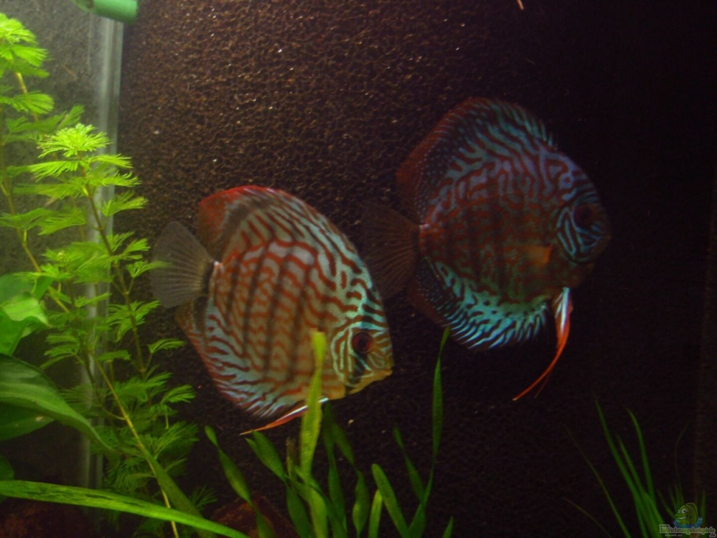 2 Diskus Golden Red Melon (8 cm) 2 Diskus Rot-Türkis (11 cm) 4 Skalare 10 rote Neon 15 schwarze Neon 2 Wabenschilderwelse (15 cm) 2 blaue Antennenwelse