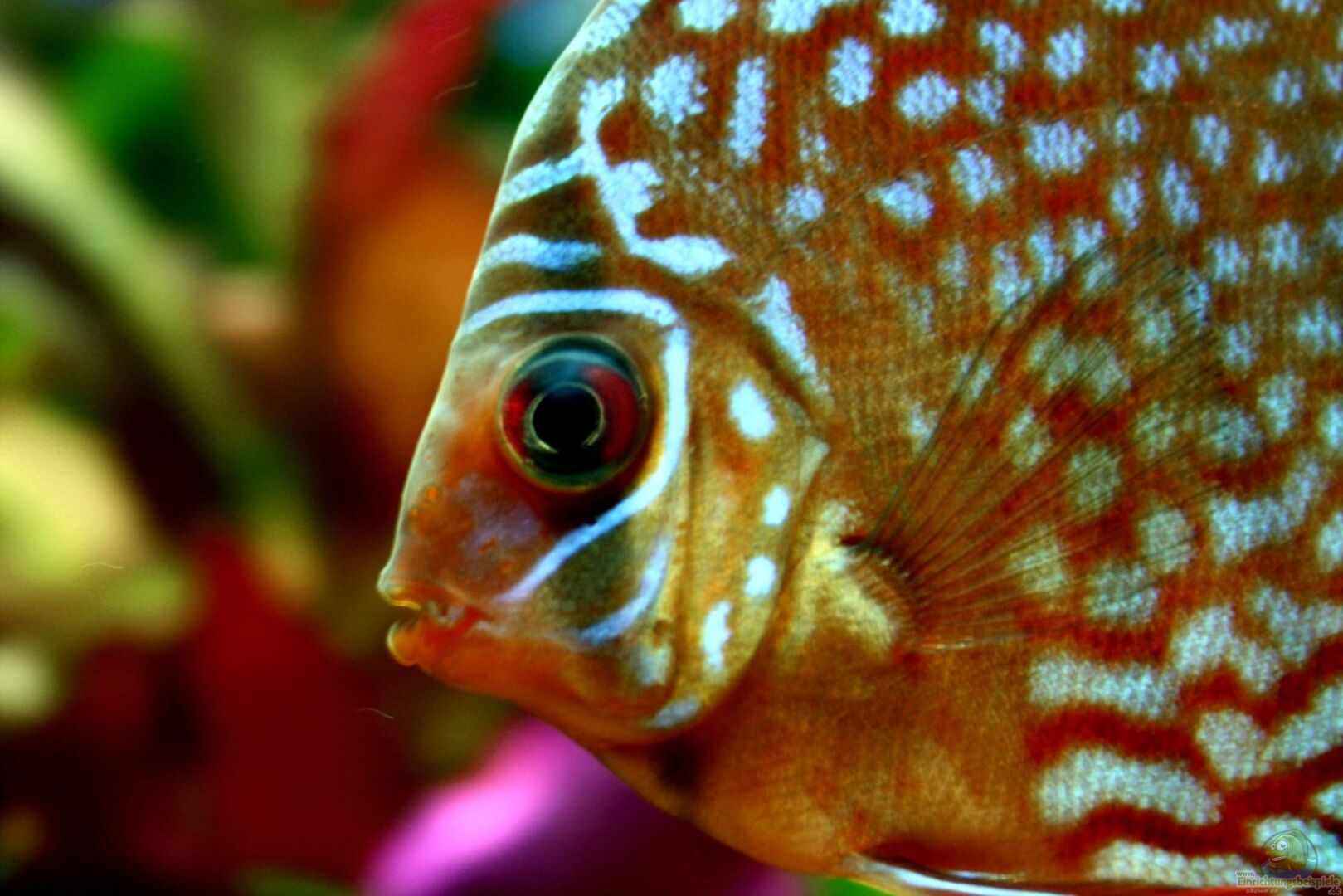 5 Disken (Symphysodon aequifasciatus) 2 x Pigeon blood blau, 1 x Santarem, 2 x Rot-Türkis Herkunft: Südamerika Grösse: 15 - 20 cm (im Durchmesser) Haltung: in Gruppen (5-8 Tiere) Wassertemperatur: 26 - 30°C Wasserwerte: GH 0-30, KH 0-25, PH-Wert 4, 0-8, 3 (diese Werte gelten nur für Stendker-Diskus, da die Tiere in diesem Wasser aufwachsen) (Quelle: Diskuszucht Stendker.de) Futter: Diskus-Spezial-Trockenfutter, Frostfutter (Mückenlarven, Artemia, Tubifex), Lebendfutter [...]