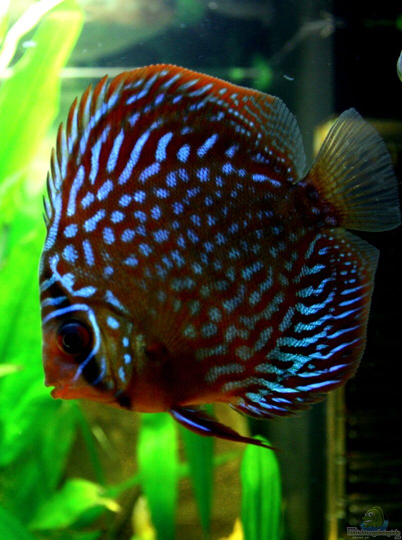 5 Disken (Symphysodon aequifasciatus) 2 x Pigeon blood blau, 1 x Santarem, 2 x Rot-Türkis Herkunft: Südamerika Grösse: 15 - 20 cm (im Durchmesser) Haltung: in Gruppen (5-8 Tiere) Wassertemperatur: 26 - 30°C Wasserwerte: GH 0-30, KH 0-25, PH-Wert 4, 0-8, 3 (diese Werte gelten nur für Stendker-Diskus, da die Tiere in diesem Wasser aufwachsen) (Quelle: Diskuszucht Stendker.de) Futter: Diskus-Spezial-Trockenfutter, Frostfutter (Mückenlarven, Artemia, Tubifex), Lebendfutter [...]