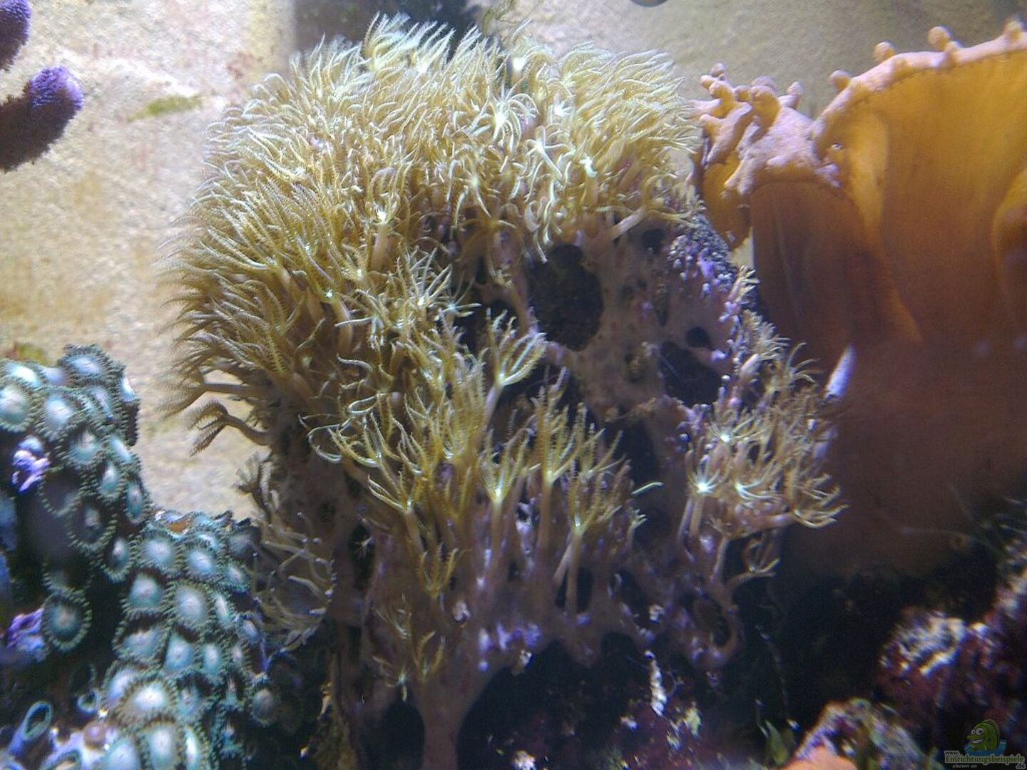 1*Salarias fasciatus - Juwelen-Felshüpfer 1*Ecsenius midas - Gold - Schleimfisch 2*Lysmata debelius (Kardinalsgarnele oder Feuergarnele) 10 Turbo fluctuosa (Turboschnecke) Actinodiscus sp. - Scheibenanemone, rot Protopalythoa sp. 04 - Grüne Krustenanemone Sarcophyton trochiliophorum - Troglederkoralle Entacmaea quadricolor - Blasenanemone Grün Discosoma sp. 15 - Scheibenanemone, grün gestreift Sarcothelia edmondsoni - blaue Xenia Zoanthus sp. 06 - Krustenanemone Keniabäumschen Alveopora [...]