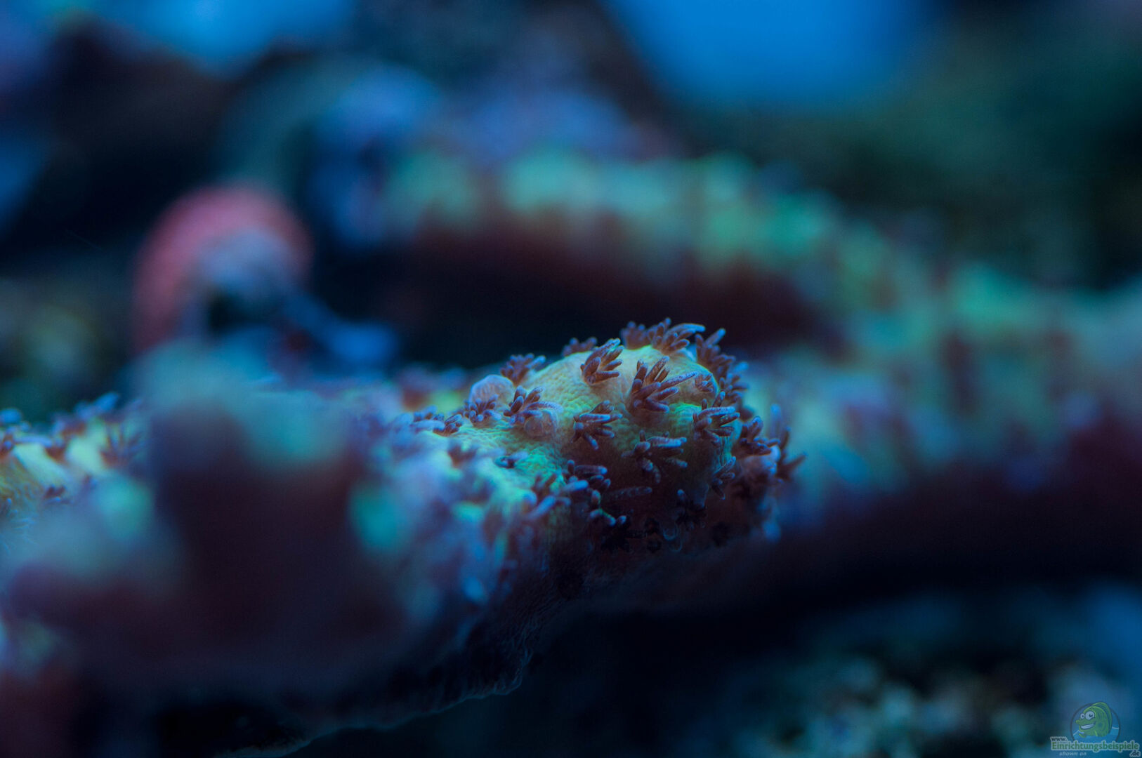 1 Lysmata wurdemanni SPS Seriatopora caliendrum neongrün Seriatopora sp. Bird of Paradise Acropora hyacinthus Acropora echinata Montipora digitata Montipora hisruta Montipora confusa LPS Euphyllia paradivisa in zwei Farbformen Caulastrea furcata Acanthastrea lordhowensis Anemonen Zoanthus sp. Ricordea florida Weiche Briareum asbestinum Briareum hamrum Sarcophyton ehrenbergi grün Capnella sp. grün