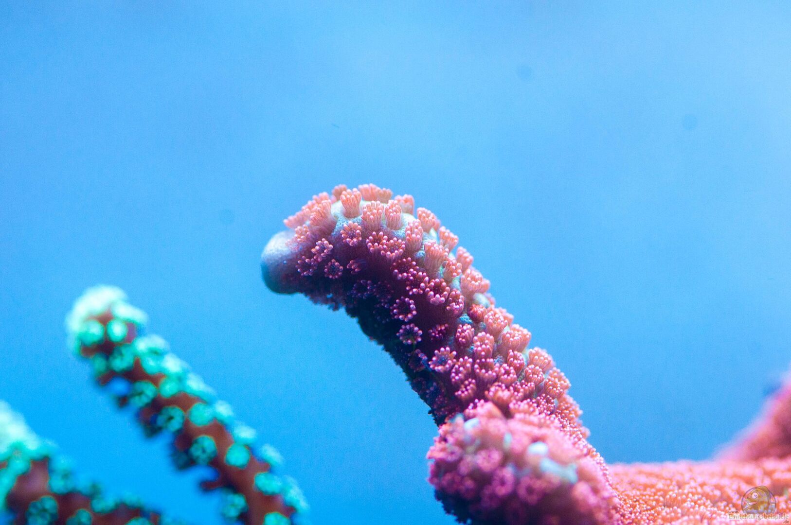 1 Lysmata wurdemanni SPS Seriatopora caliendrum neongrün Seriatopora sp. Bird of Paradise Acropora hyacinthus Acropora echinata Montipora digitata Montipora hisruta Montipora confusa LPS Euphyllia paradivisa in zwei Farbformen Caulastrea furcata Acanthastrea lordhowensis Anemonen Zoanthus sp. Ricordea florida Weiche Briareum asbestinum Briareum hamrum Sarcophyton ehrenbergi grün Capnella sp. grün