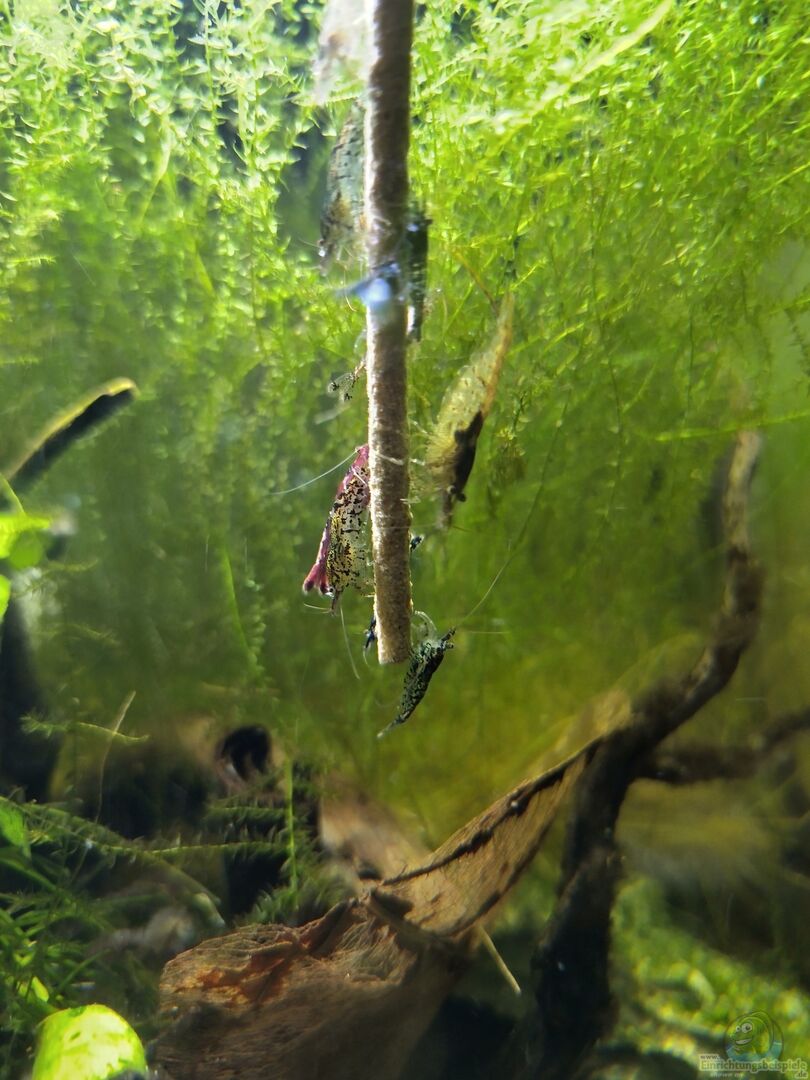 ca. 40-50 Zwerggarnelen in den Farbschlägen gelb, rot blau, orange, Rileys und einige Kreuzungen da ich nicht züchten möchte ist das o.k. 4 Raubschnecken, Anentome helena, kümmern sich um die eingeschleppten Schnecken 3 (1M/2W) Oranger Zwergflusskrebs CPO, harmonieren super mit den Garnelen und leisten gute Dienste bei der Futterverwertung