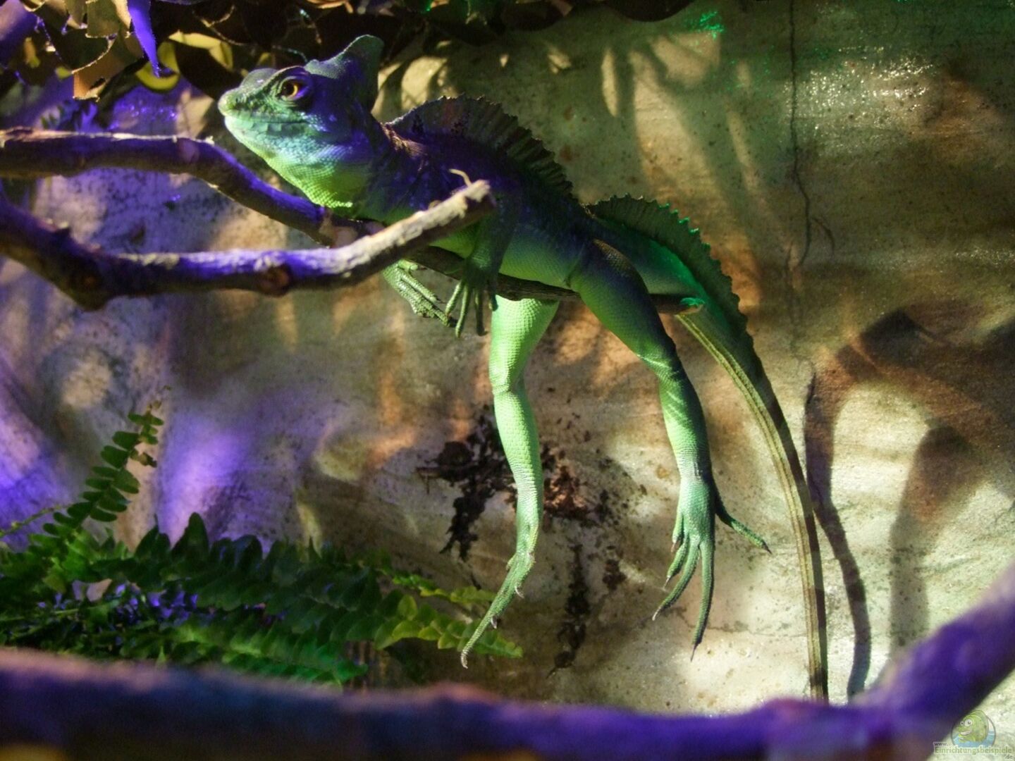 Das Palludarium (eigentlich ist es immer noch viel zu klein) bietet zwei Basiliskus plumifrons (Stirnlappen Basilisken) (1/1) eine deutlich artgerechtere Haltung als das Becken aus dem ich sie vom Vorbesitzer erlöst habe. Das hatte die Grö??e 110x50x50cm - vollkommene Tierquälerei! Ich habe den beiden die mir grösste Fläche zur Verfügung gestellt und versucht allen Bedürfnissen gerecht zu werden. Wenn man die Tiere aber in Aktion sieht, dann weis man, dass diese Tiere eigentlich keine Tiere [...]