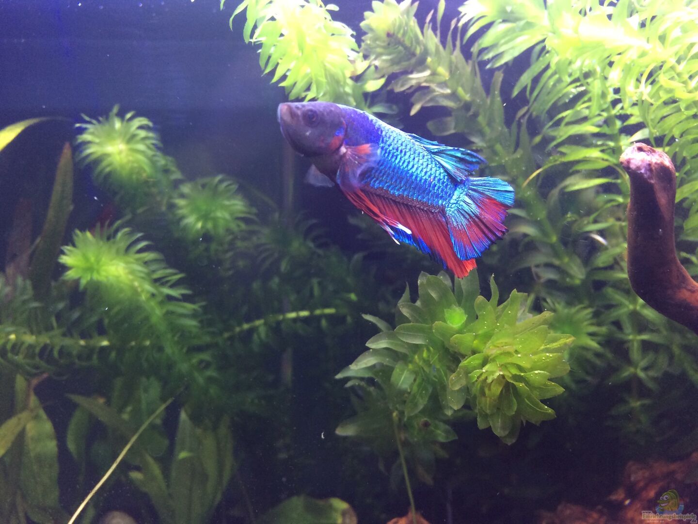 Ein Betta splendens Männchen (halfmoon plakat) Verschiedene Schnecken und Süsswasser Hydra, welche ich mit Pflanzen eingeschleppt habe.