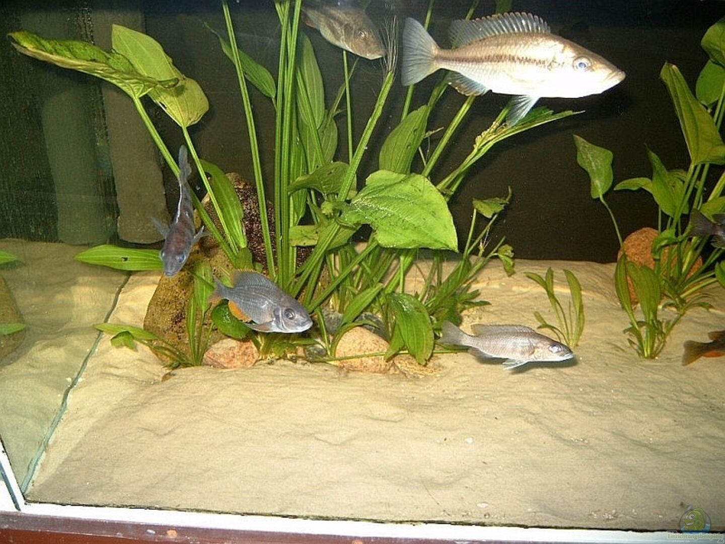 Sehr gro??e Flusssteine ergeben Höhlen, wo sich bedrängte Tiere und bruttragende Weibchen zurückziehen können. Die Rückwand habe ich mit schwarzen Aquariensilicon überspachtelt. Dadurch verschwinden gleich die hässlichen Kratzer und es wirkt optisch gut. Man kann ohne Gefahr Steine anlegen. Freie Sandflächen bieten genügend Schwimmraum. Da Malawis Laichgruben anlegen und deshalb die spiegelnde Bodenscheibe zusehen wäre, habe ich sie wie folgt gestaltet. Zuerst wurde die Bodenscheibe [...]